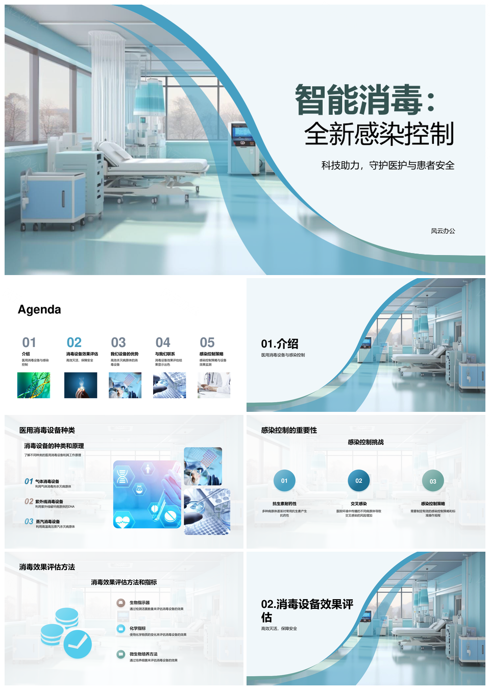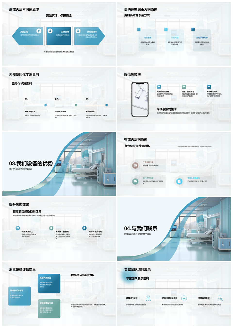 这是一张医用智能消毒设备院感控制评估医护销售演讲PPT模板,包含医用、智能、消毒设备、院感、控制、评估、医护、销售、演讲等主题内容,也可用作医用智能消毒设备院感控制、智能消毒设备院感控制评估、消毒设备院感控制评估医护、院感控制评估医护销售、控制评估医护销售演讲、医用智能消毒设备、智能消毒设备院感控制、消毒设备院感控制评估、院感控制评估医护、评估医护销售演讲、医用智能消毒设备、消毒设备院感控制、院感控制评估、控制评估医护、评估医护销售等PPT场景使用。 风云办公提供的医用智能消毒设备院感控制评估医护销售演讲PPT模板,下载格式为pptx,一共21页,作品中文字及图均可以修改和编辑,图片更改请在作品中右键图片并更换,文字修改请直接点击文字进行修改。