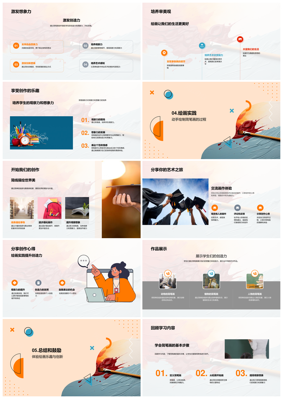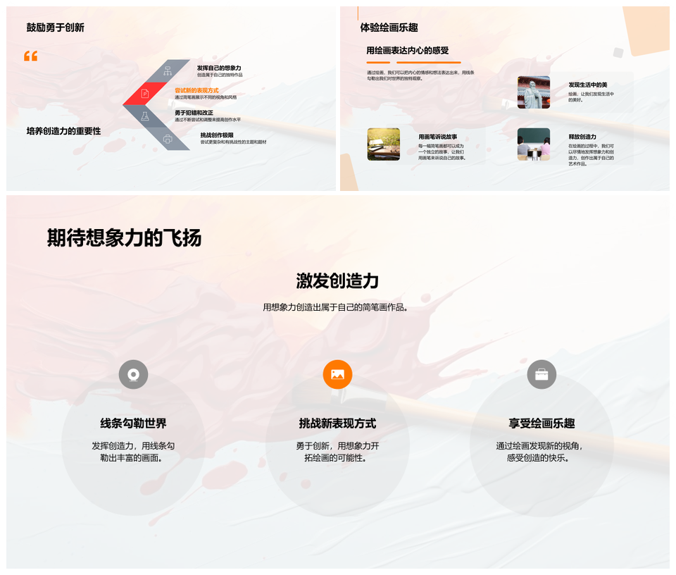 这是一张二年级简笔画教学观察想象创新实践PPT模板,包含简笔画教学、观察、想象、创新、实践等主题内容,也可用作二年级简笔画教学观察想象、简笔画教学观察想象创新、教学观察想象创新实践、二年级简笔画观察想象创新、二年级教学观察想象创新、简笔画观察想象创新实践、观察想象创新实践教学、二年级简笔画教学创新、教学观察想象创新、二年级简笔画教学实践、简笔画教学观察实践、二年级观察想象创新、教学想象创新实践、简笔画创新实践教学、观察想象实践教学等PPT场景使用。