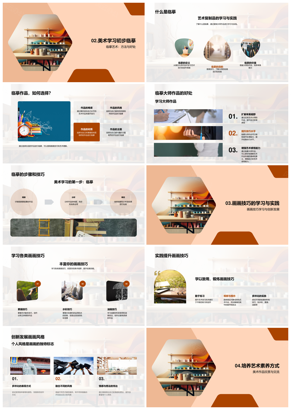 风云办公提供的初学美术临摹技巧与历史应用艺术赏析PPT模板,下载格式为pptx,一共26页,作品中文字及图均可以修改和编辑,图片更改请在作品中右键图片并更换,文字修改请直接点击文字进行修改。