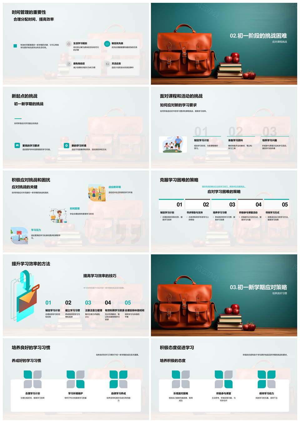 初一新学期学习计划时间管理预习指导PPT模板推荐