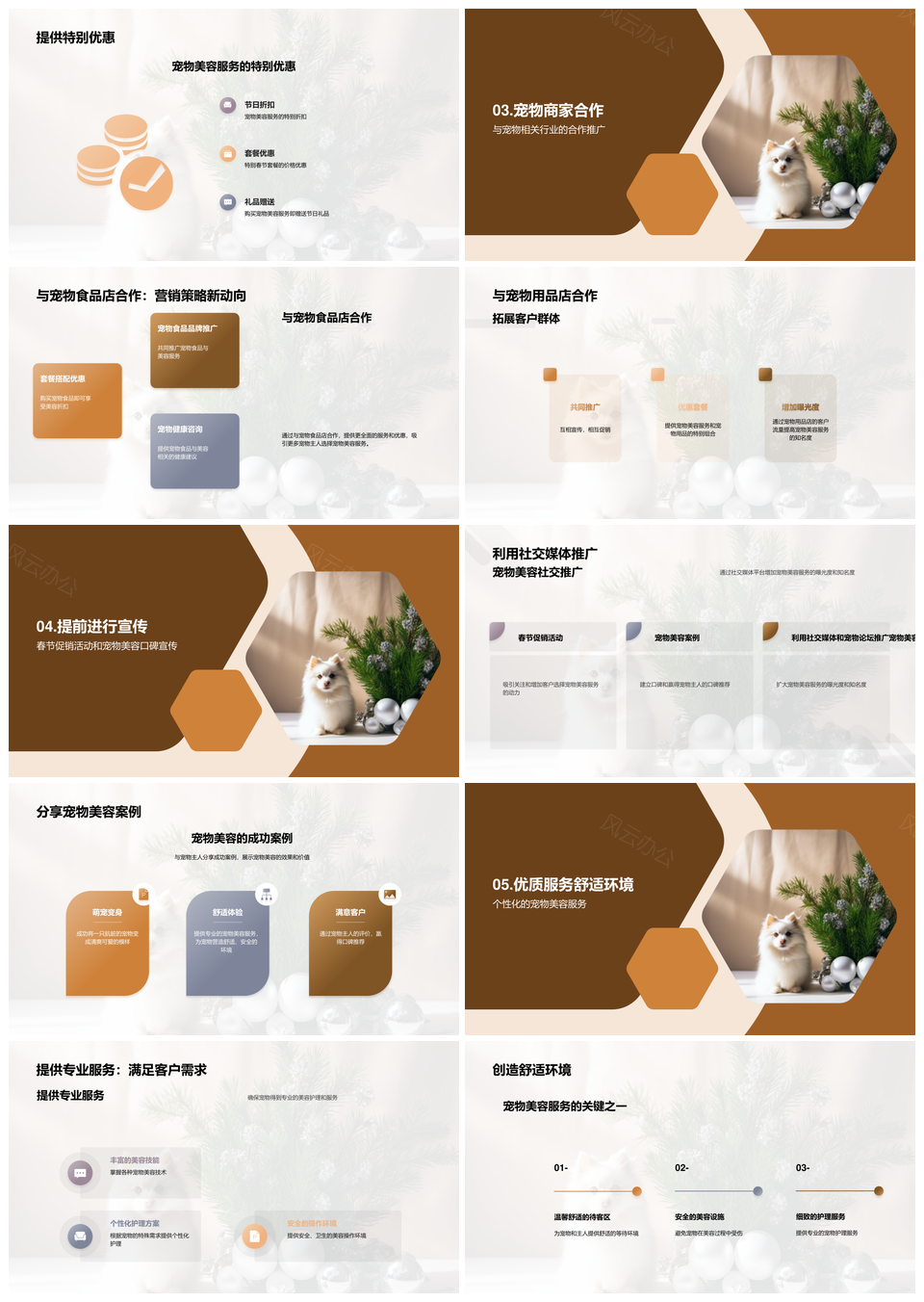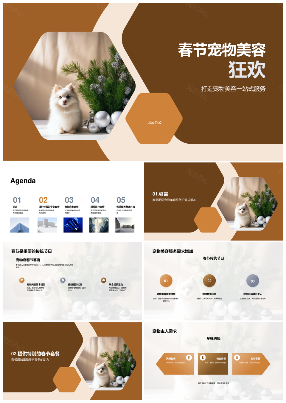 风云办公提供的春节宠物美容策略应对客流降节日营销PPT模板,下载格式为pptx,一共18页,作品中文字及图均可以修改和编辑,图片更改请在作品中右键图片并更换,文字修改请直接点击文字进行修改。