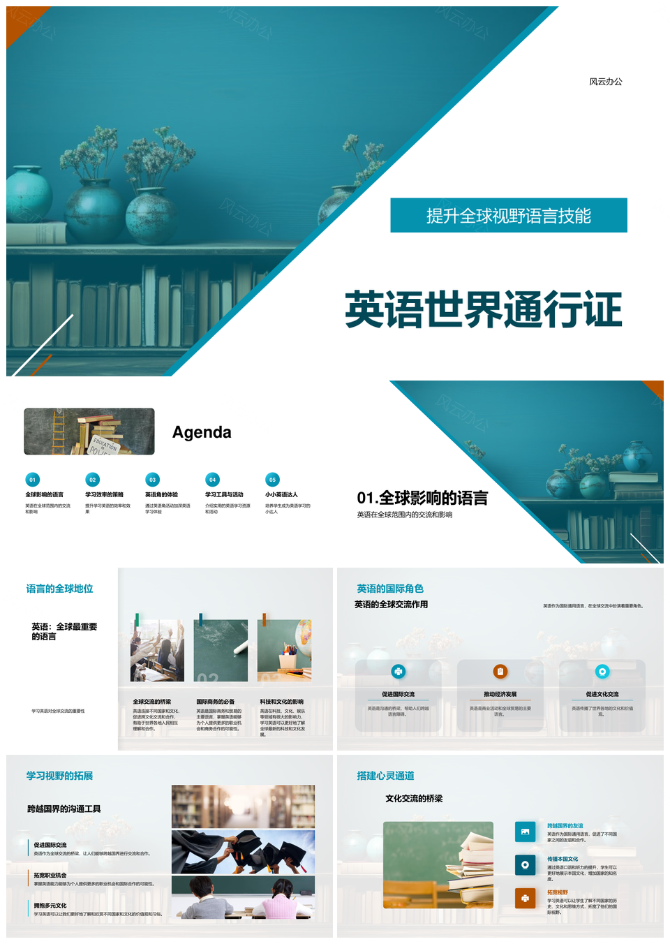 风云办公提供的英语学用通行全球构建语言世界PPT模板,下载格式为pptx,一共33页,作品中文字及图均可以修改和编辑,图片更改请在作品中右键图片并更换,文字修改请直接点击文字进行修改。