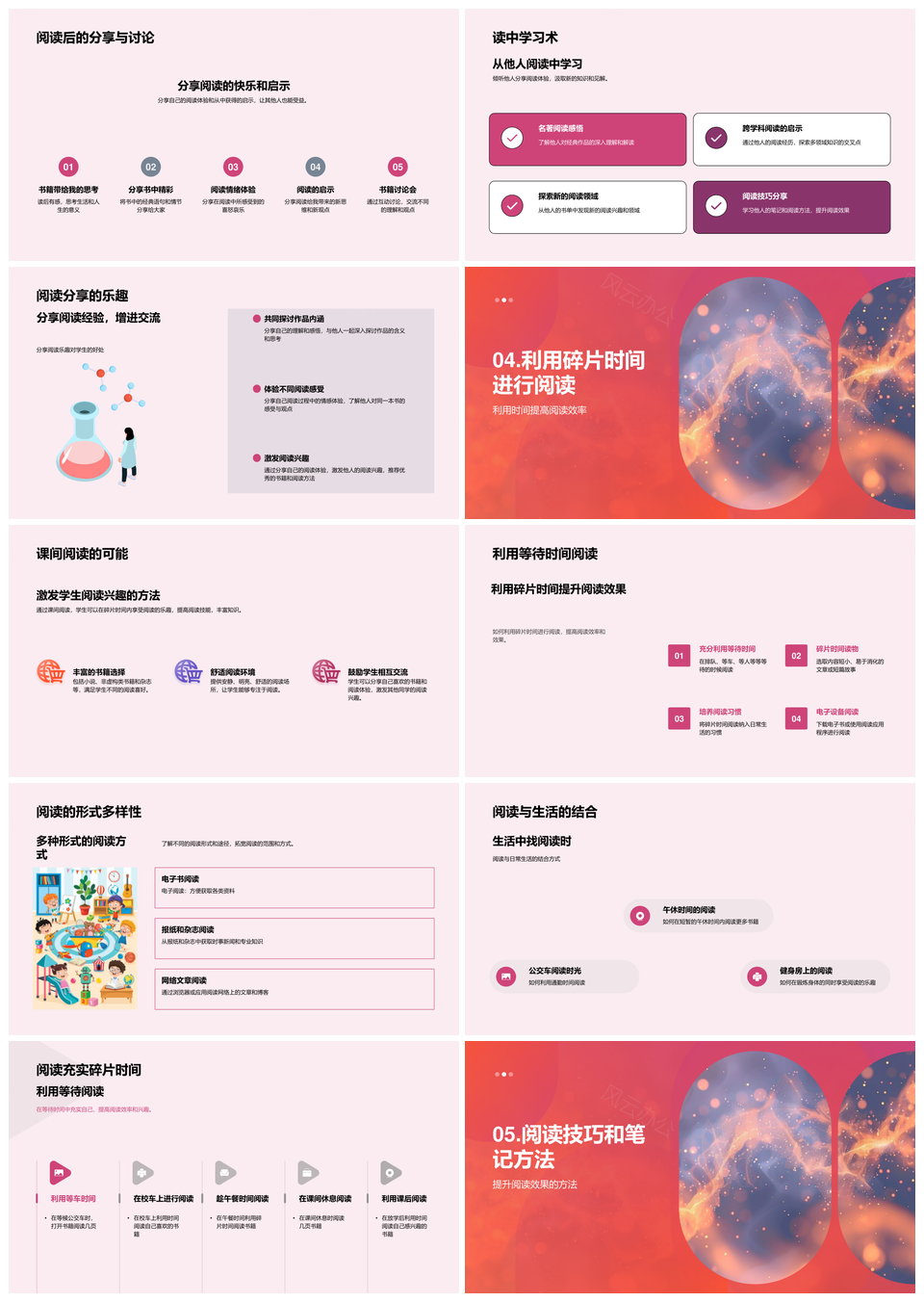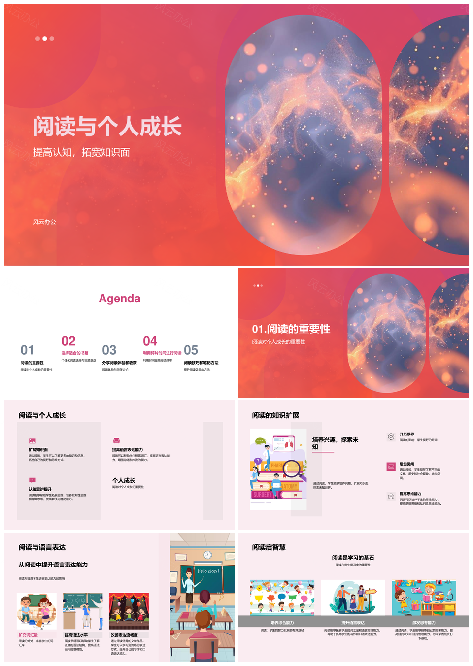 阅读成长认知提升技巧分享拓知识PPT模板推荐