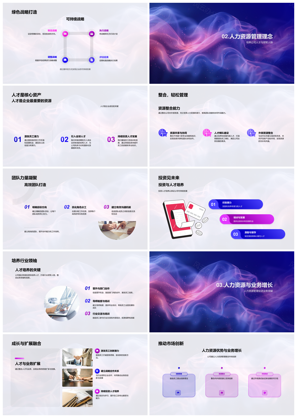 风云办公提供的企业人才引领业务发展与投资战略PPT模板,下载格式为pptx,一共33页,作品中文字及图均可以修改和编辑,图片更改请在作品中右键图片并更换,文字修改请直接点击文字进行修改。