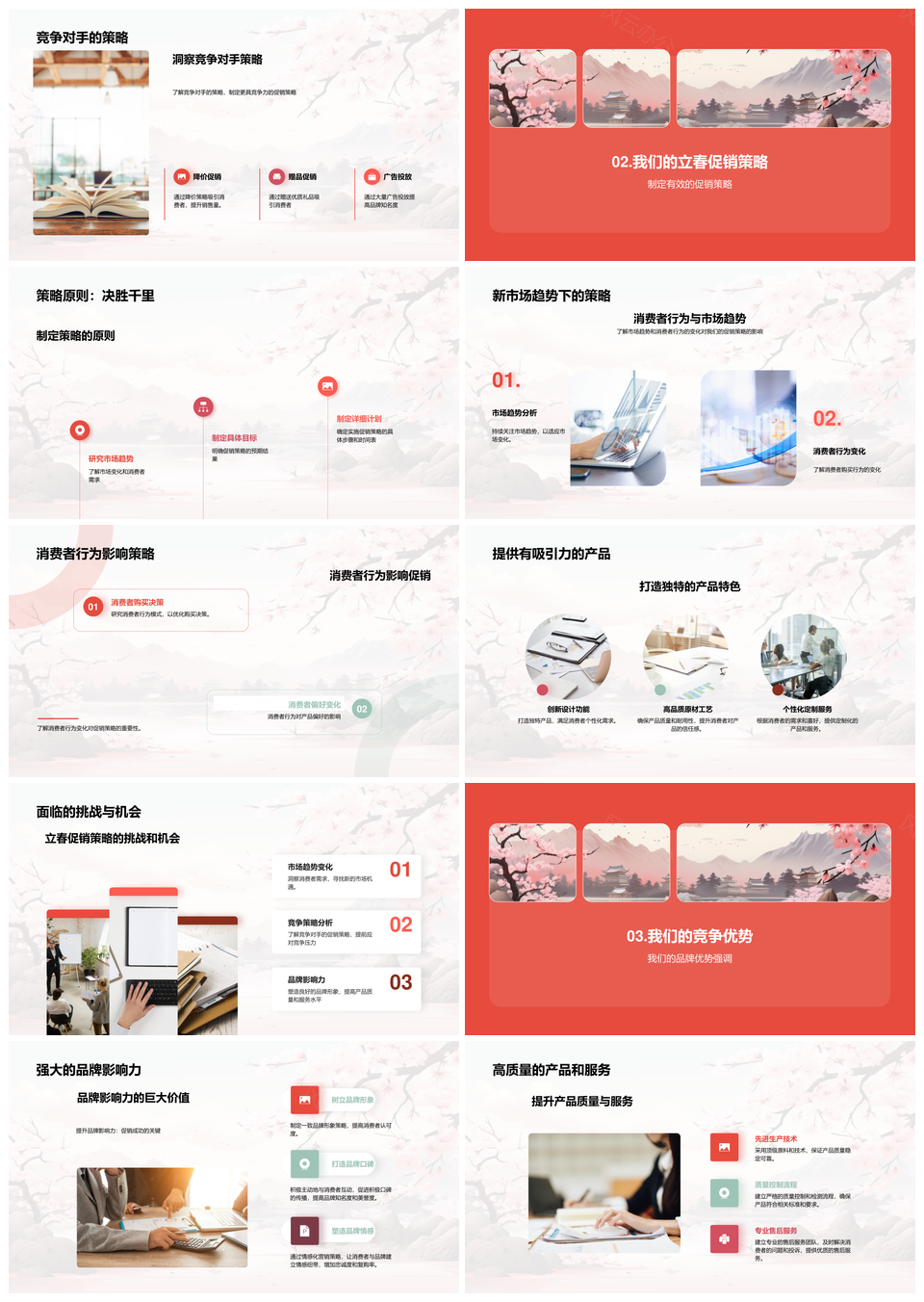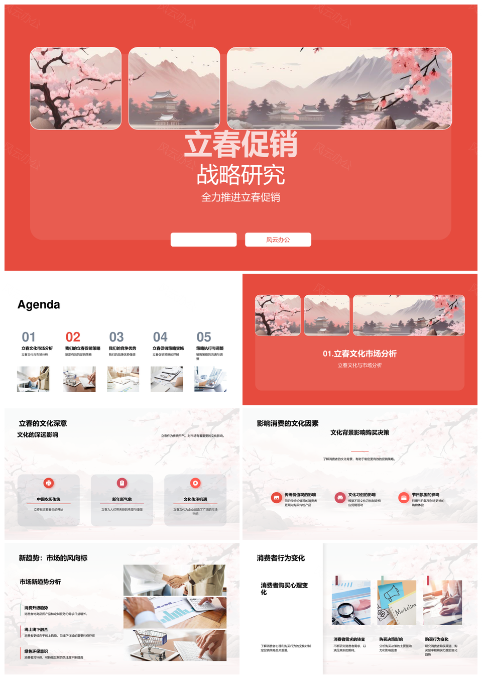 风云办公提供的立春促销战略市场消费竞争策略分析PPT模板,下载格式为pptx,一共33页,作品中文字及图均可以修改和编辑,图片更改请在作品中右键图片并更换,文字修改请直接点击文字进行修改。