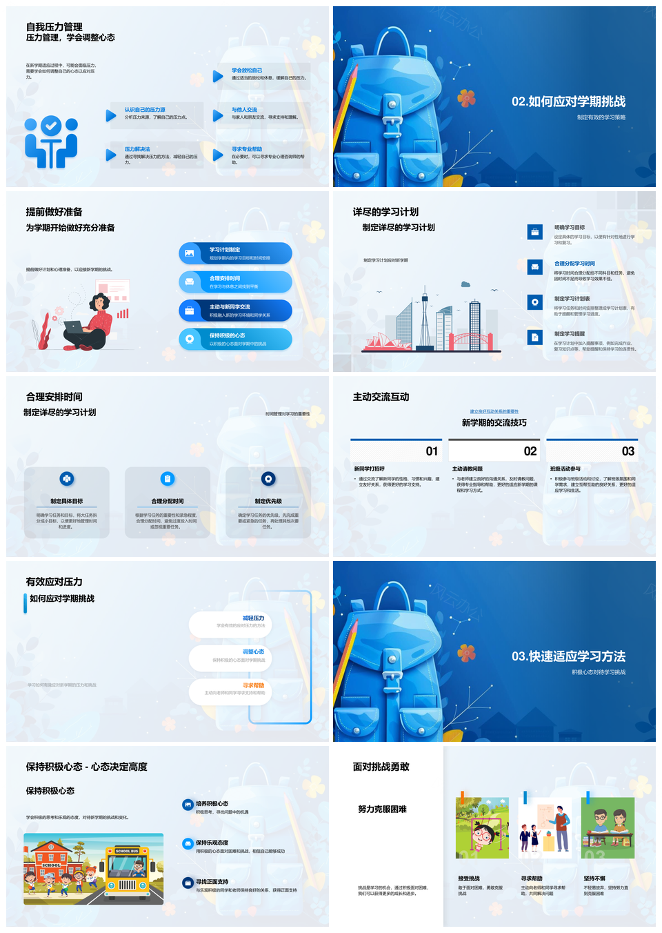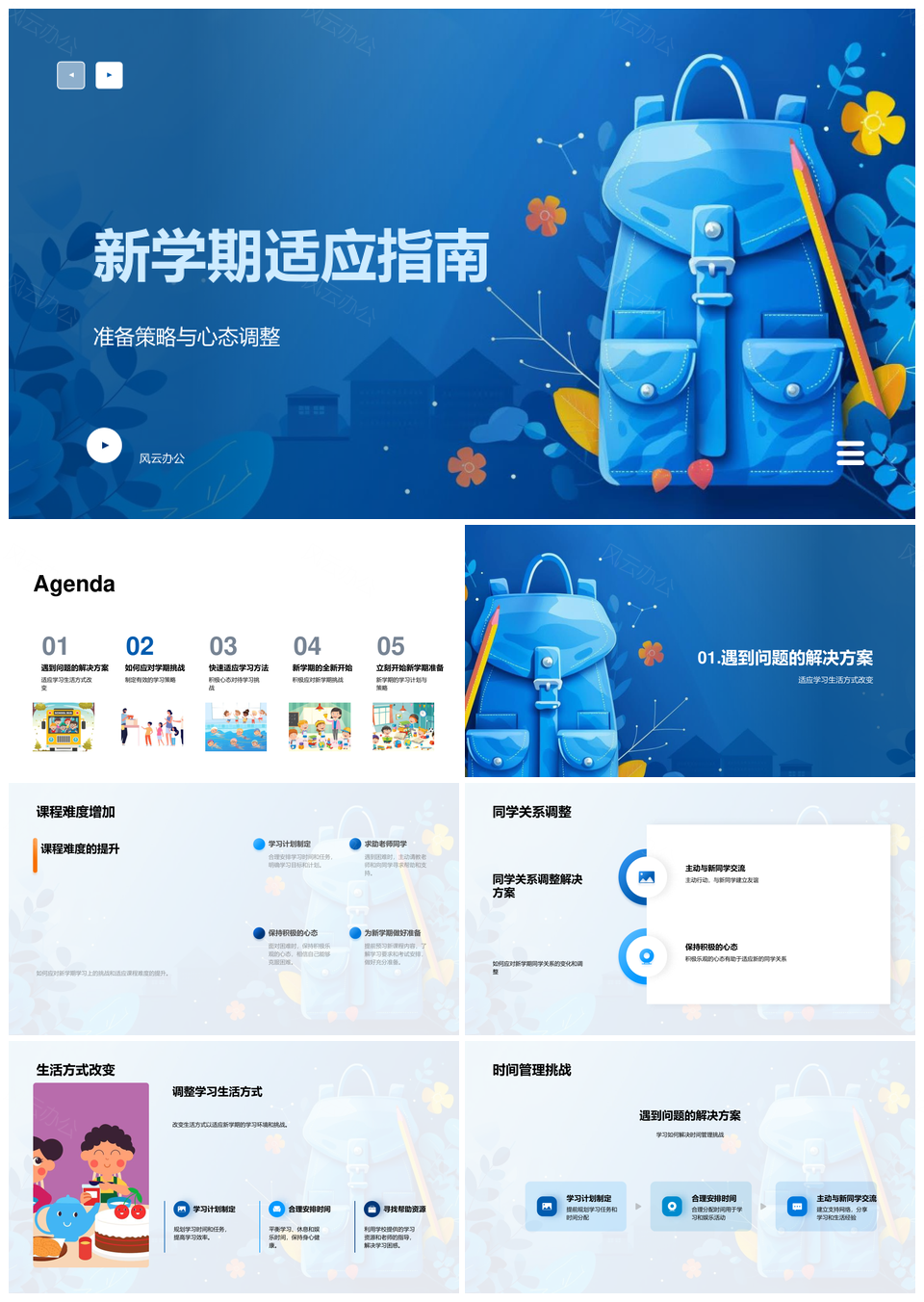 风云办公提供的新学期学业人际心态调整与高效管理PPT模板,下载格式为pptx,一共33页,作品中文字及图均可以修改和编辑,图片更改请在作品中右键图片并更换,文字修改请直接点击文字进行修改。