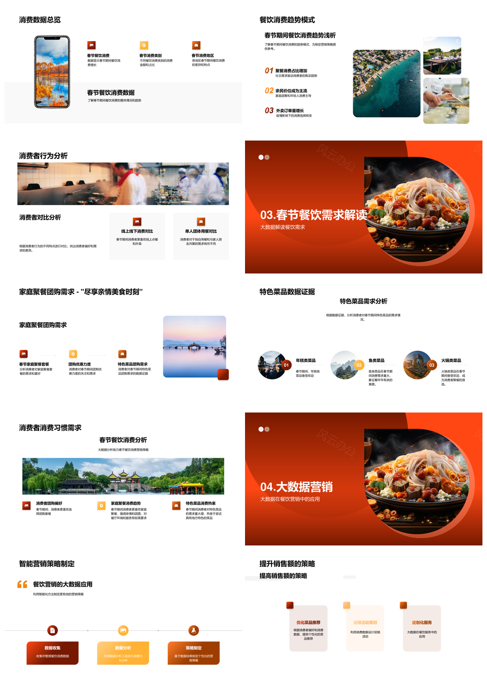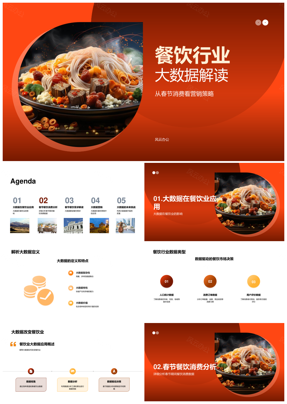 风云办公提供的餐饮业春节消费大数据解析营销策略PPT模板,下载格式为pptx,一共23页,作品中文字及图均可以修改和编辑,图片更改请在作品中右键图片并更换,文字修改请直接点击文字进行修改。