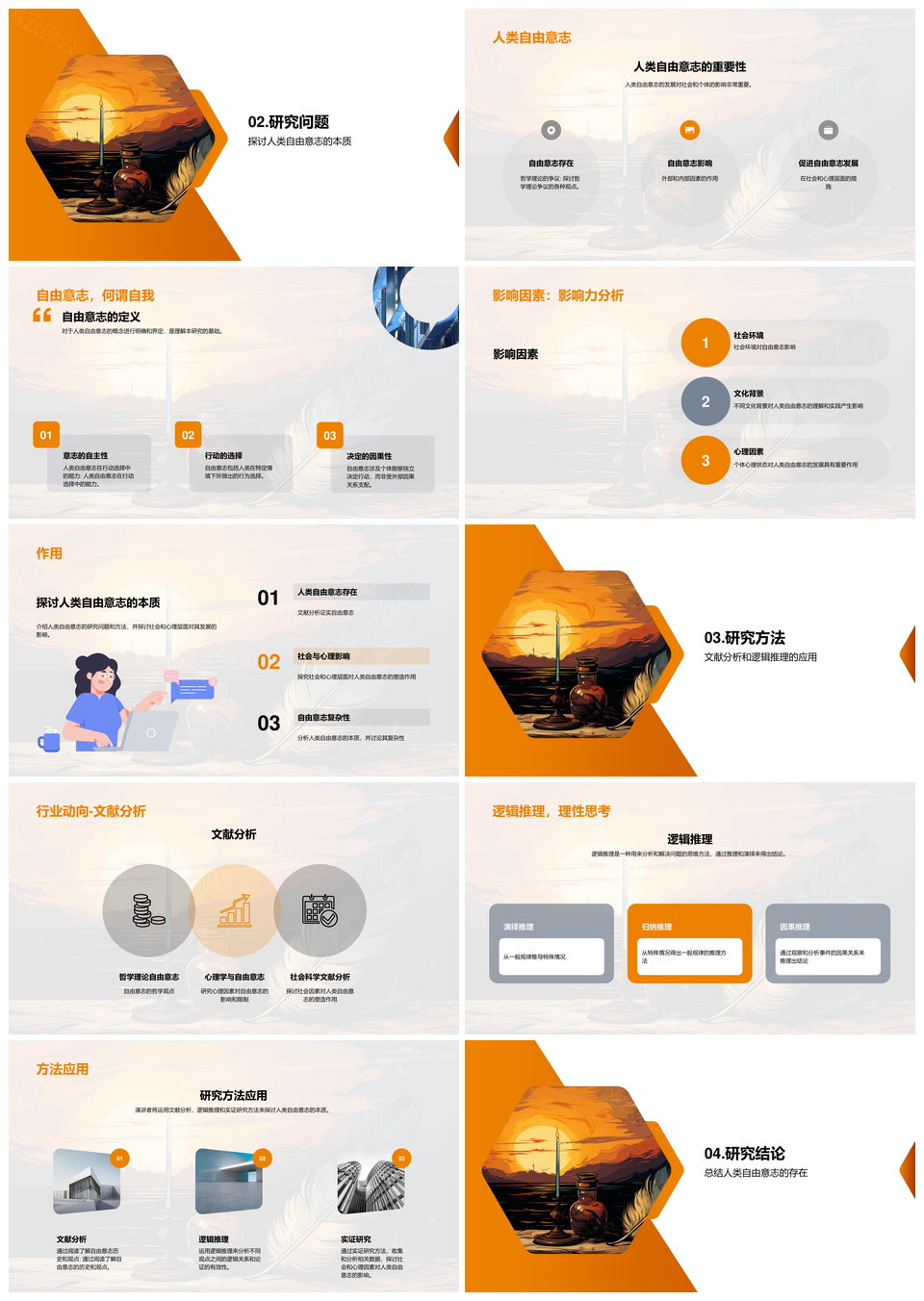 风云办公提供的自由意志存在复杂性哲辩文献逻辑析研PPT模板,下载格式为pptx,一共27页,作品中文字及图均可以修改和编辑,图片更改请在作品中右键图片并更换,文字修改请直接点击文字进行修改。