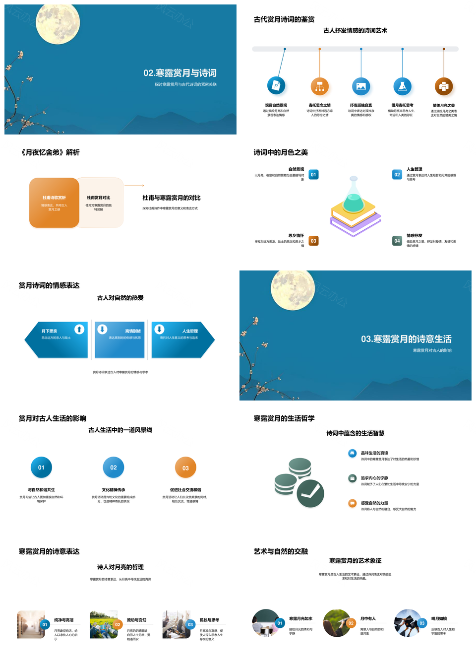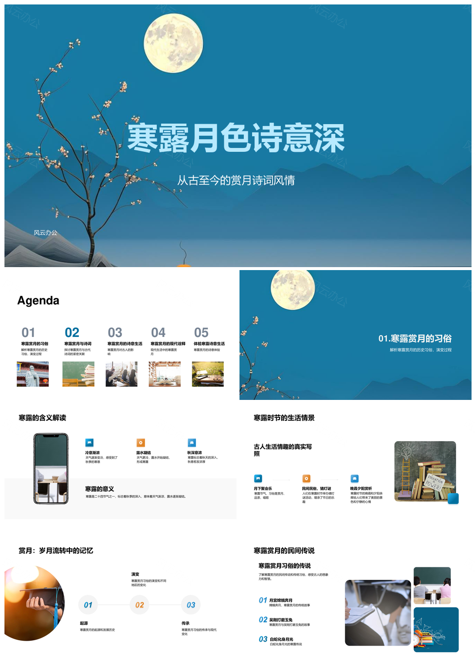 风云办公提供的寒露赏月杜甫诗意生活思今PPT模板,下载格式为pptx,一共28页,作品中文字及图均可以修改和编辑,图片更改请在作品中右键图片并更换,文字修改请直接点击文字进行修改。