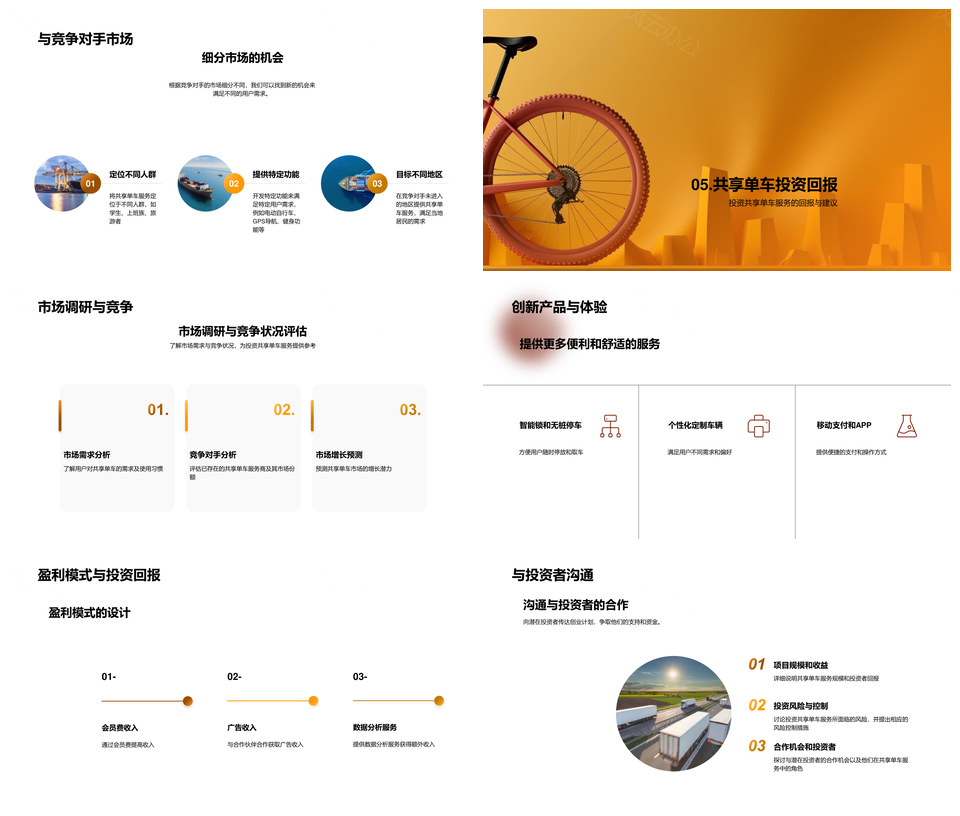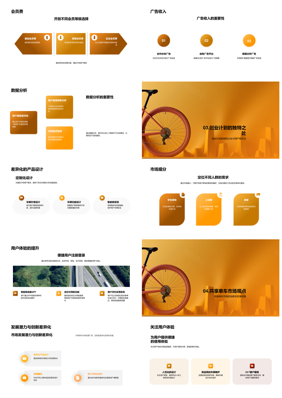 这是一张全球共享单车创业者商业计划书绿色低碳投资回报PPT模板,包含全球、共享单车、创业者、商业计划书、绿色、低碳、投资回报等主题内容,也可用作全球共享单车创业者商业计划书、共享单车创业者商业计划书绿色低碳、创业者商业计划书绿色低碳投资回报、全球共享单车商业计划书绿色低碳、全球共享单车绿色低碳投资回报、共享单车商业计划书绿色低碳投资回报、共享单车创业者绿色低碳投资回报、全球共享单车创业者投资回报、共享单车创业者商业计划书投资回报、创业者商业计划书投资回报、商业计划书绿色低碳投资回报、共享单车绿色低碳投资回报、全球共享单车绿色低碳、创业者商业计划书绿色低碳、共享单车创业者投资回报等PPT场景使用。 风云办公提供的全球共享单车创业者商业计划书绿色低碳投资回报PPT模板,下载格式为pptx,一共24页,作品中文字及图均可以修改和编辑,图片更改请在作品中右键图片并更换,文字修改请直接点击文字进行修改。