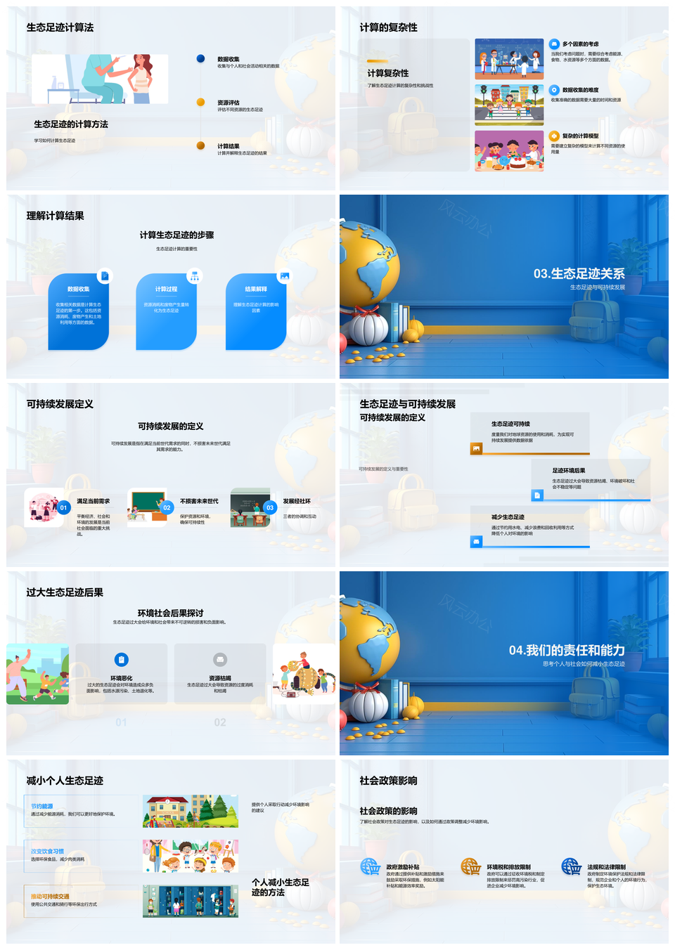风云办公提供的生态足迹计算影响与可持续发展策略PPT模板,下载格式为pptx,一共23页,作品中文字及图均可以修改和编辑,图片更改请在作品中右键图片并更换,文字修改请直接点击文字进行修改。