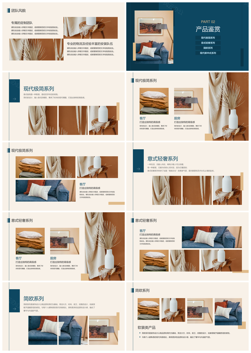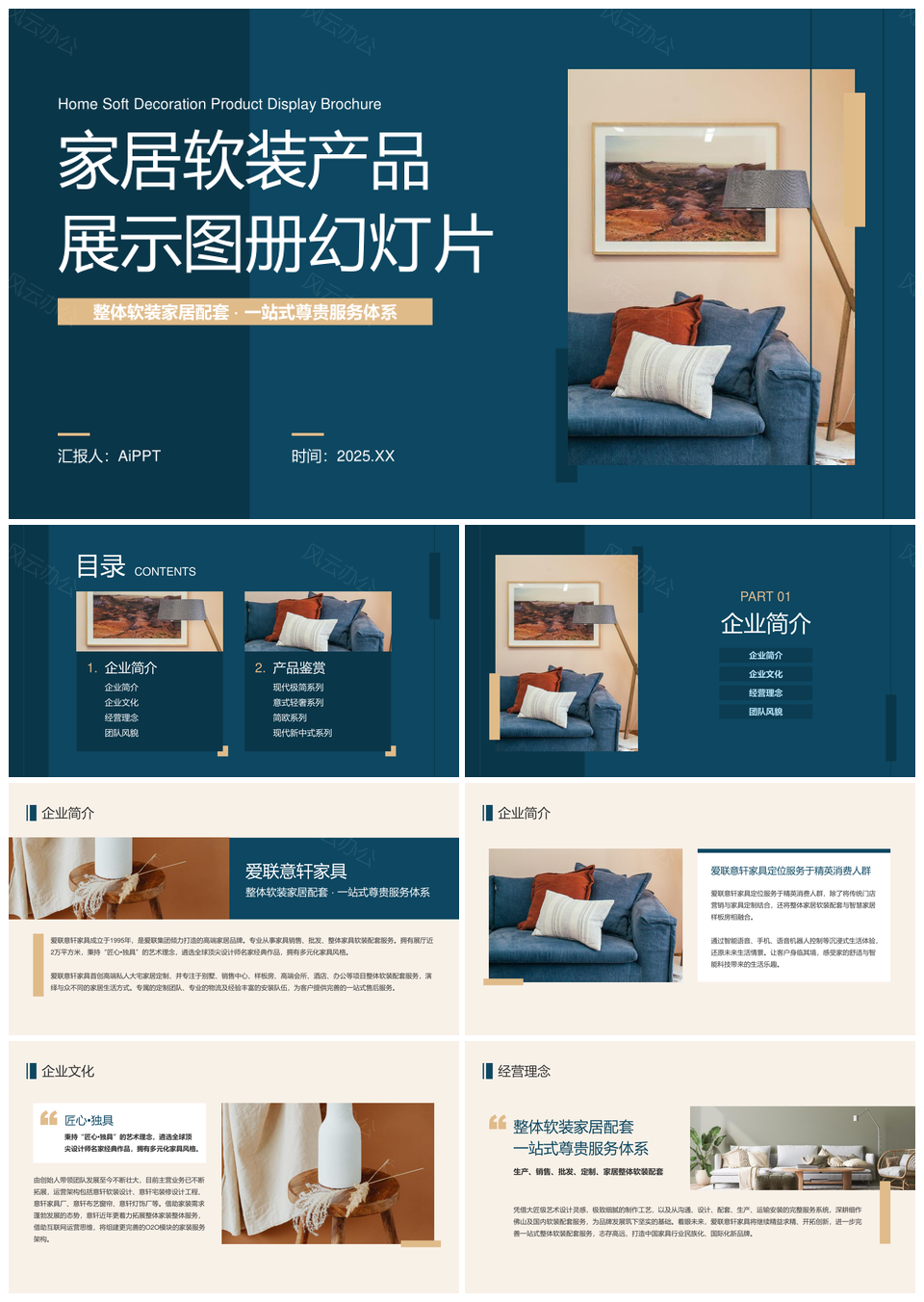 这是一张2025蓝色简约风家居软装产品宣传图册PPT模板,包含2025、蓝色、简约风、家居、软装产品、宣传图册等主题内容,也可用作2025蓝色简约风家居、蓝色简约风家居软装、简约风家居软装产品、家居软装产品宣传、软装产品宣传图册、2025蓝色简约风家居软装、蓝色简约风家居软装产品、简约风家居软装产品宣传、家居软装产品宣传图册、2025蓝色简约风家居、蓝色简约风家居软装、简约风家居软装产品、家居软装产品宣传、软装产品宣传图册、2025蓝色简约风等PPT场景使用。 风云办公提供的2025蓝色简约风家居软装产品宣传图册PPT模板,下载格式为pptx,一共22页,作品中文字及图均可以修改和编辑,图片更改请在作品中右键图片并更换,文字修改请直接点击文字进行修改。