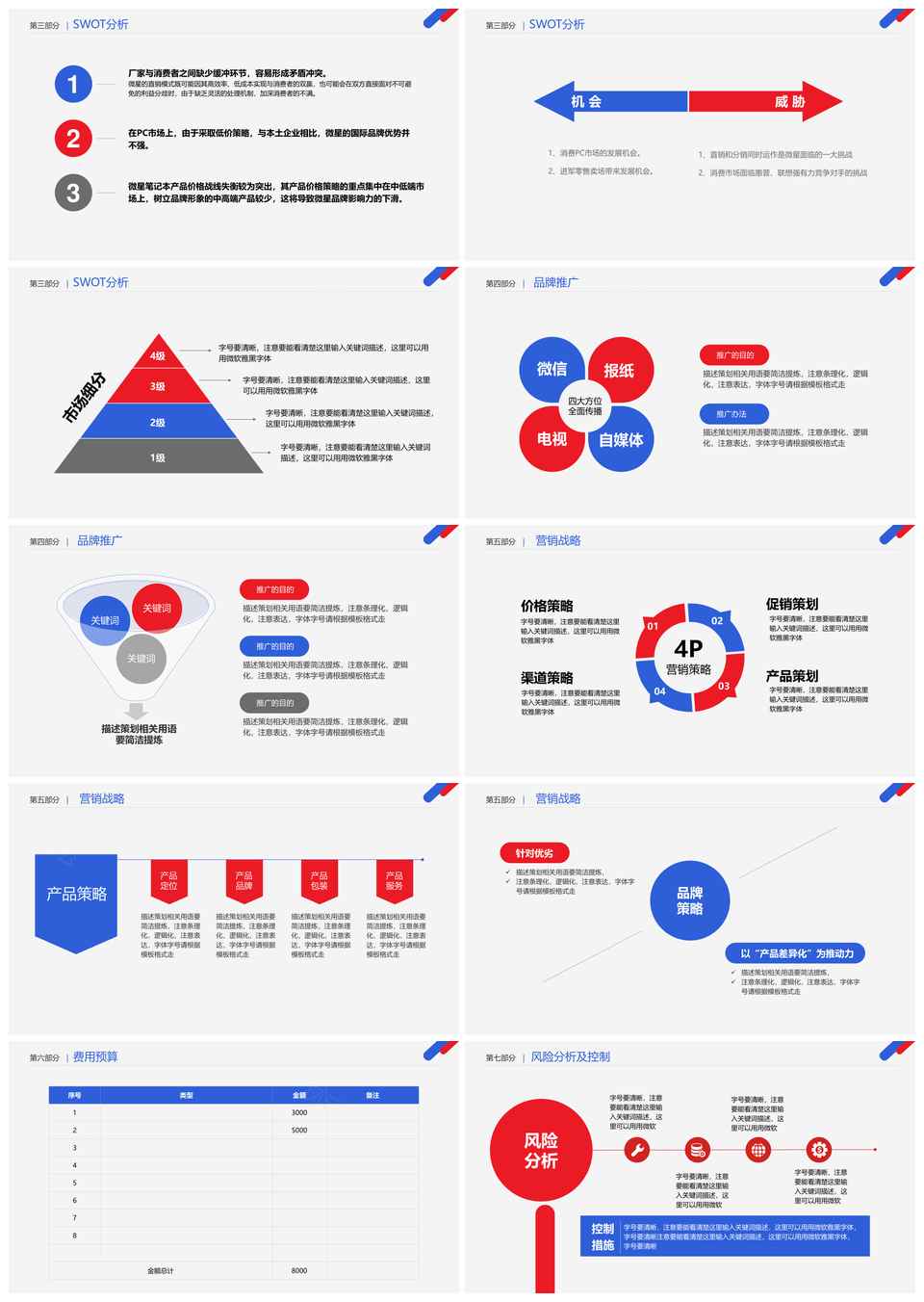 这是一张红蓝配色营销活动策划PPT模板,包含红蓝配色、营销活动、策划等主题内容,也可用作红蓝配色营销活动策划、红蓝配色营销活动、红蓝配色活动策划、配色营销活动策划、红蓝配色营销、红蓝配色活动、配色营销活动、营销活动策划、红蓝配色、配色营销、营销活动、活动策划等PPT场景使用。 风云办公提供的红蓝配色营销活动策划PPT模板,下载格式为pptx,一共19页,作品中文字及图均可以修改和编辑,图片更改请在作品中右键图片并更换,文字修改请直接点击文字进行修改。