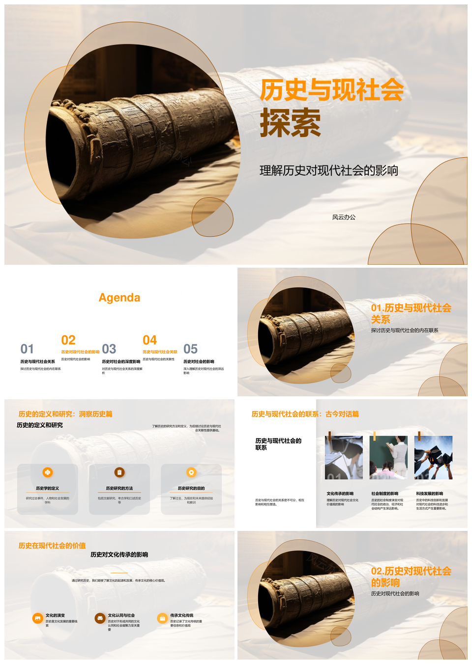 风云办公提供的历史古卷探析现代社会多维影响PPT模板,下载格式为pptx,一共23页,作品中文字及图均可以修改和编辑,图片更改请在作品中右键图片并更换,文字修改请直接点击文字进行修改。