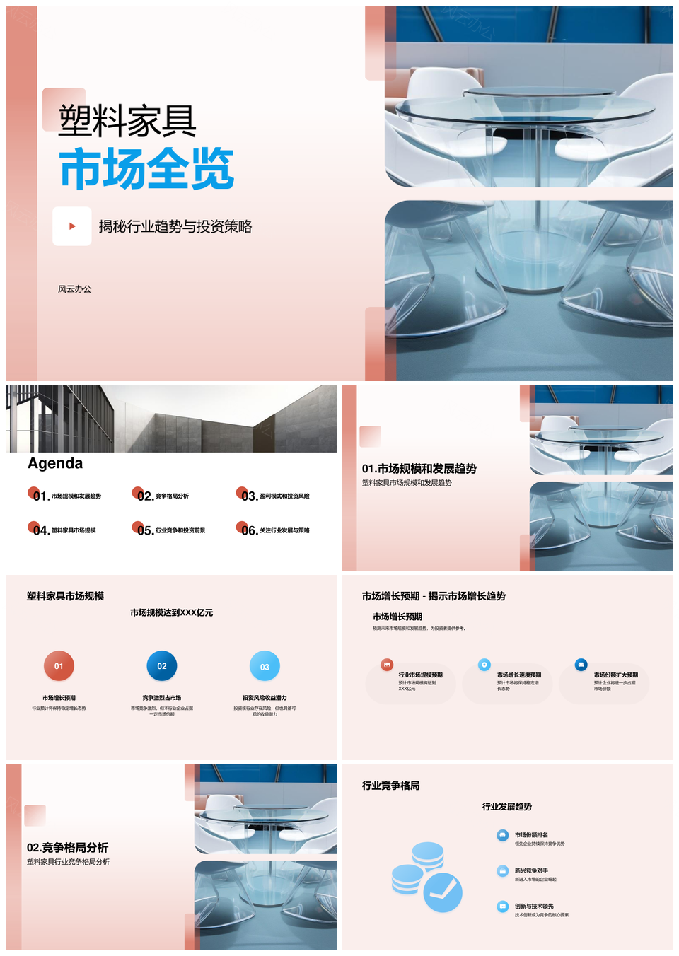 这是一张塑料家具制造市场规模发展趋势投资前景PPT模板,包含塑料家具、制造市场、规模、发展、趋势、投资、前景等主题内容,也可用作塑料家具制造市场、家具制造市场规模、制造市场规模发展、市场规模发展趋势、规模发展趋势投资、发展趋势投资前景、塑料家具制造、家具制造市场、制造市场规模、市场规模发展、规模发展趋势、发展趋势投资、趋势投资前景、塑料家具、家具制造等PPT场景使用。 风云办公提供的塑料家具制造市场规模发展趋势投资前景PPT模板,下载格式为pptx,一共23页,作品中文字及图均可以修改和编辑,图片更改请在作品中右键图片并更换,文字修改请直接点击文字进行修改。