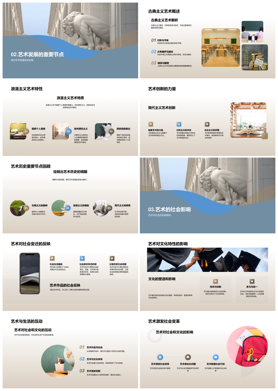 艺术历史教学多样发展与社会影响风格PPT模板