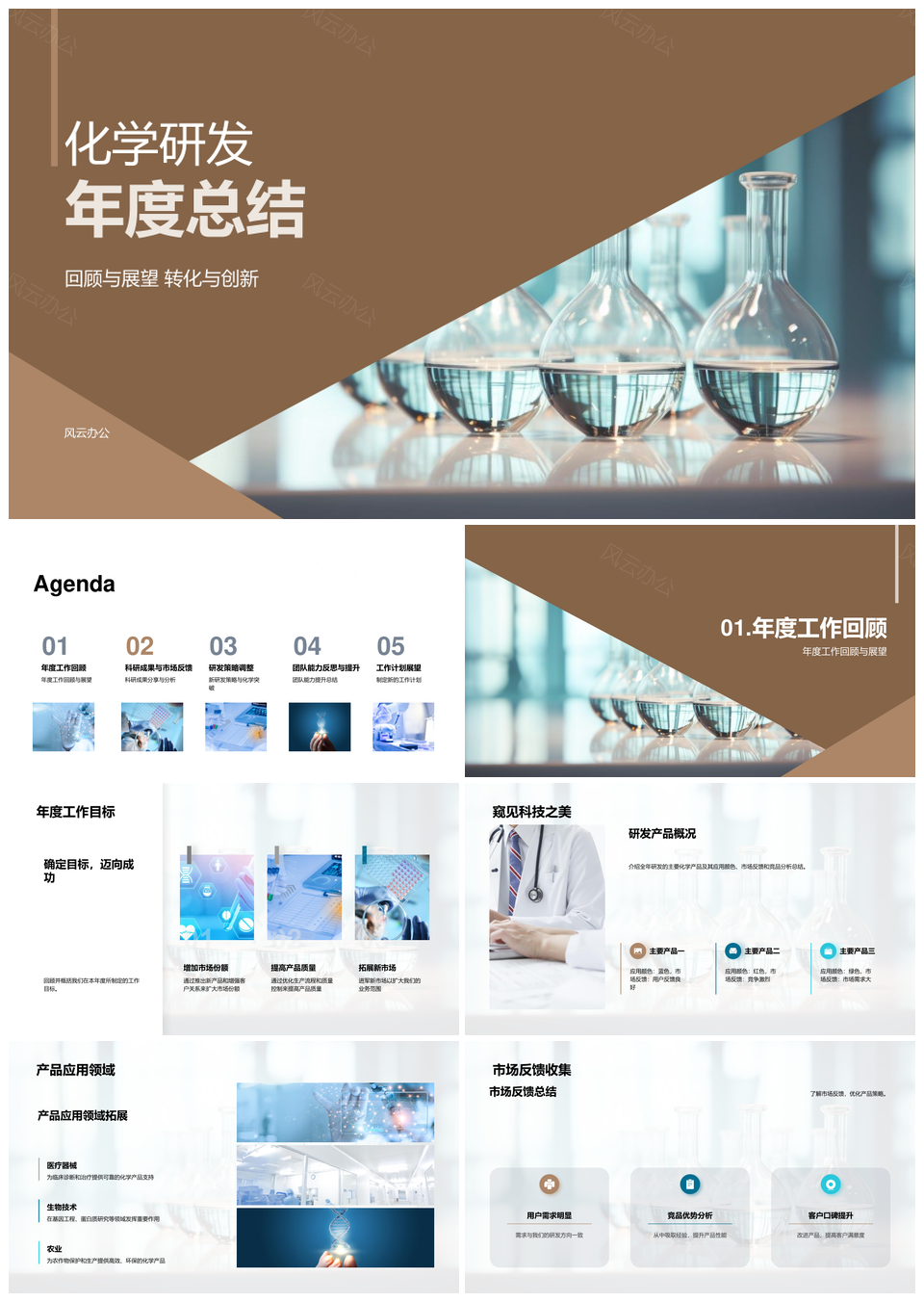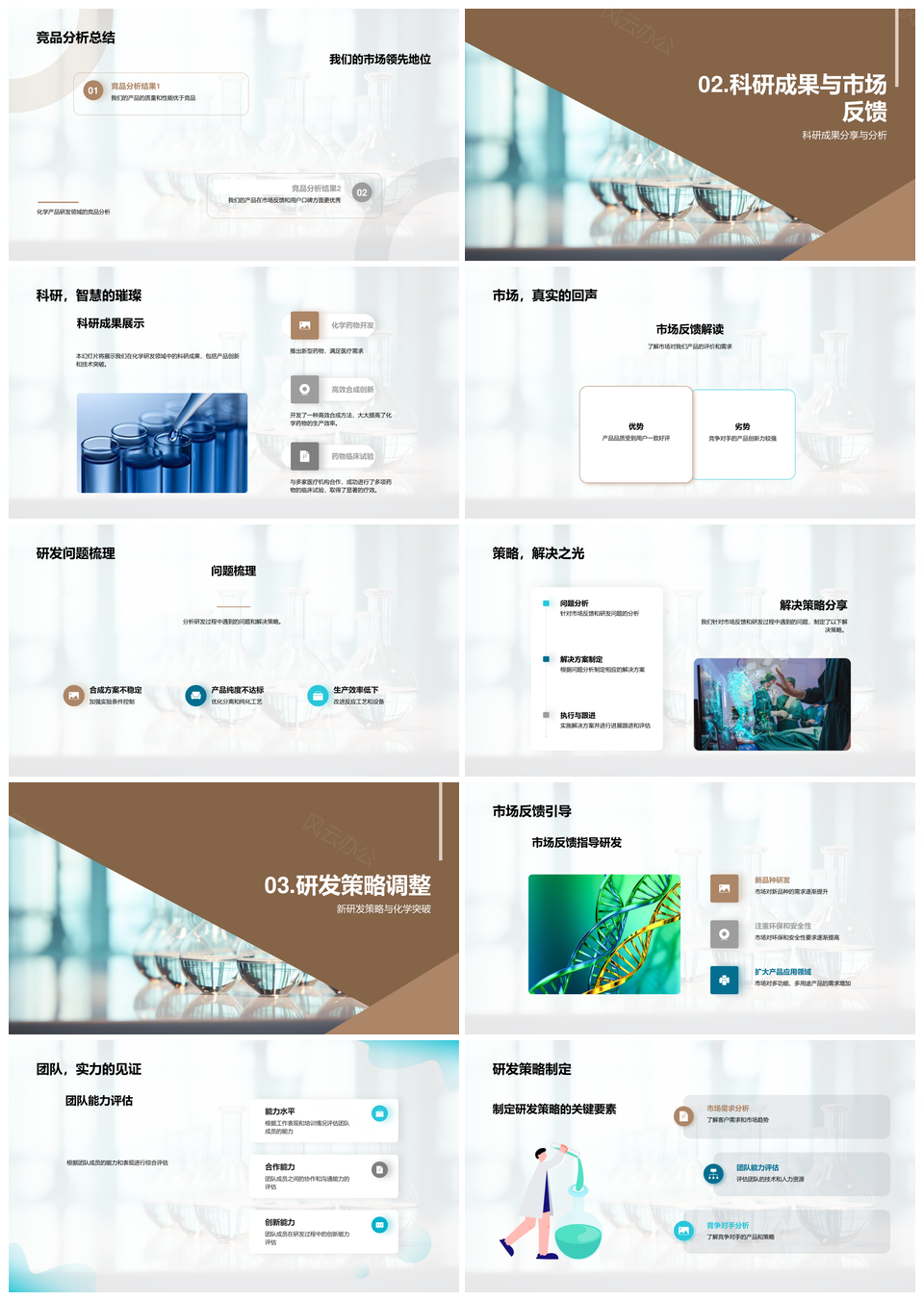 化学研发年度目标产品成果市场竞品策略团队总结PPT模板推荐