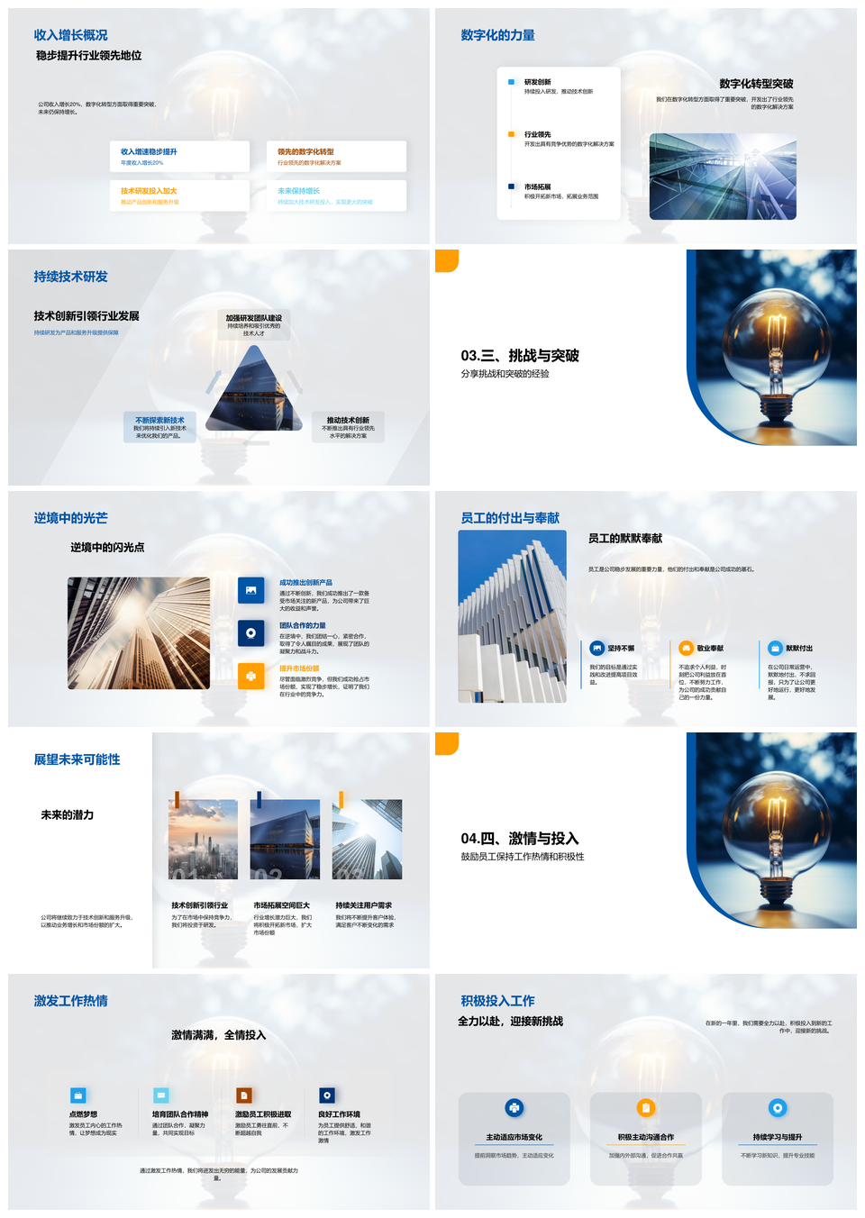 风云办公提供的奋进之路挑战创新技术研发创辉煌增长PPT模板,下载格式为pptx,一共23页,作品中文字及图均可以修改和编辑,图片更改请在作品中右键图片并更换,文字修改请直接点击文字进行修改。
