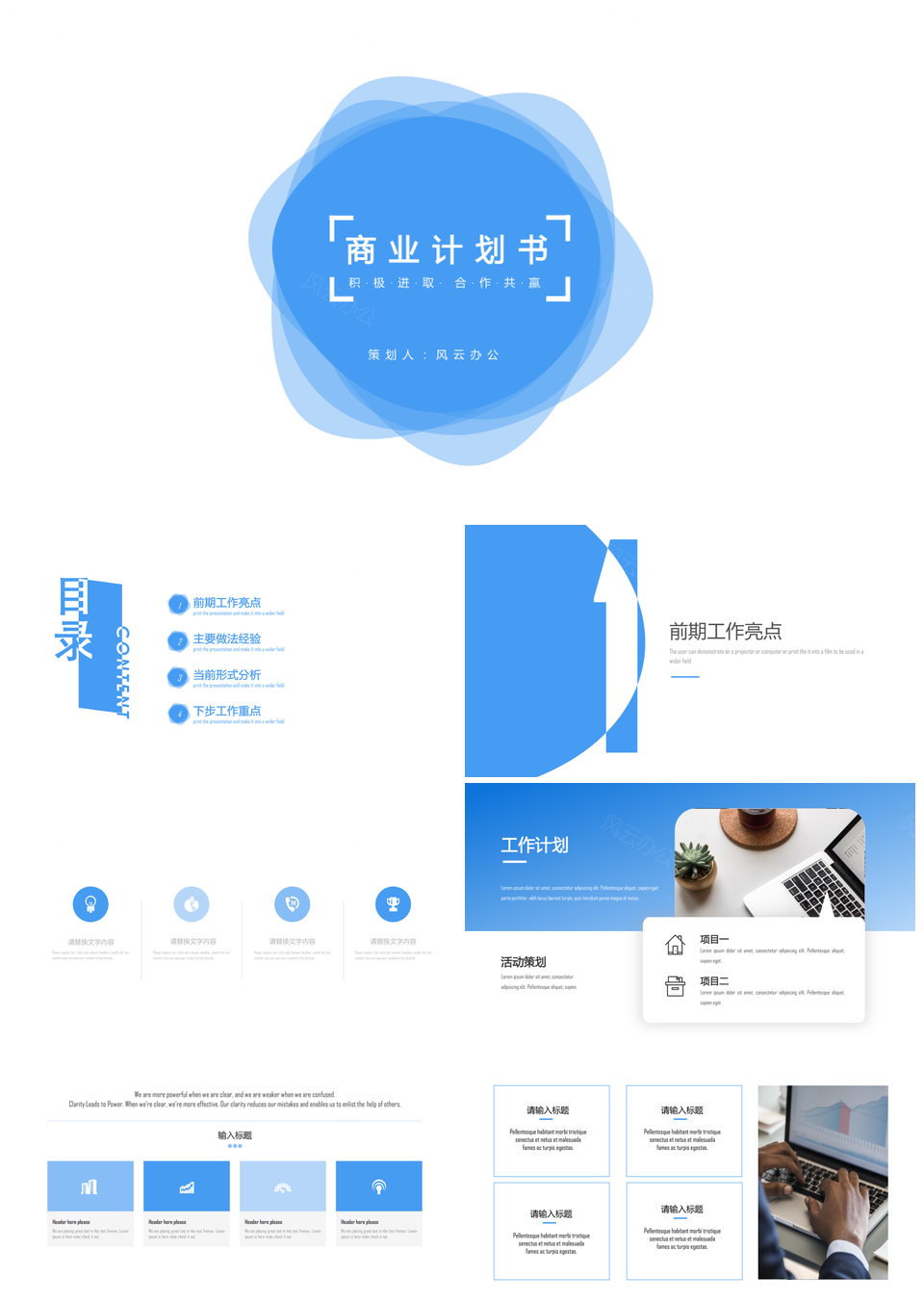 这是一张商业计划书PPT模板,包含商业、计划书等主题内容,也可用作商业、计划书 商业计划书等PPT场景使用。 风云办公提供的商业计划书PPT模板,下载格式为pptx,一共22页,作品中文字及图均可以修改和编辑,图片更改请在作品中右键图片并更换,文字修改请直接点击文字进行修改。
