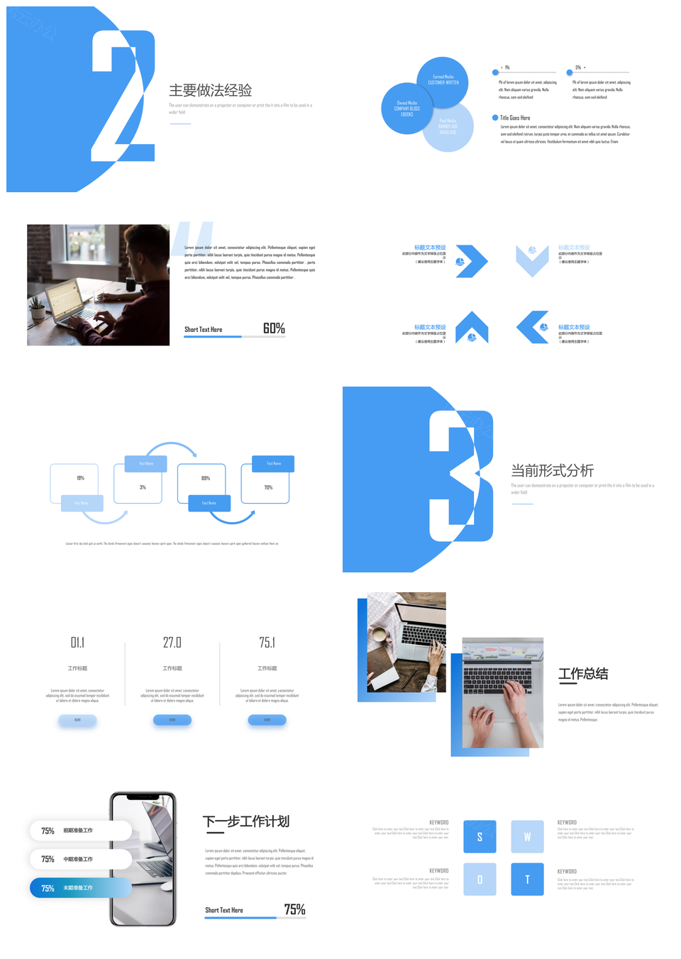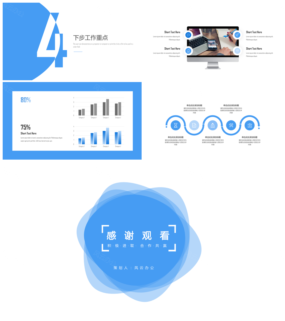 彩色动态精美设计多图表年度总结商业计划书商务PPT模板
