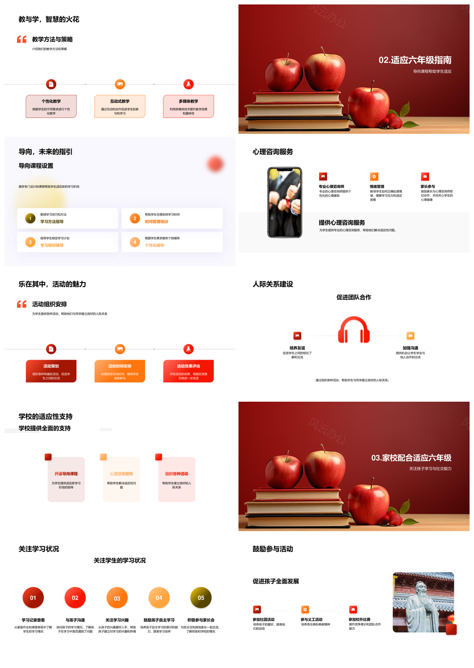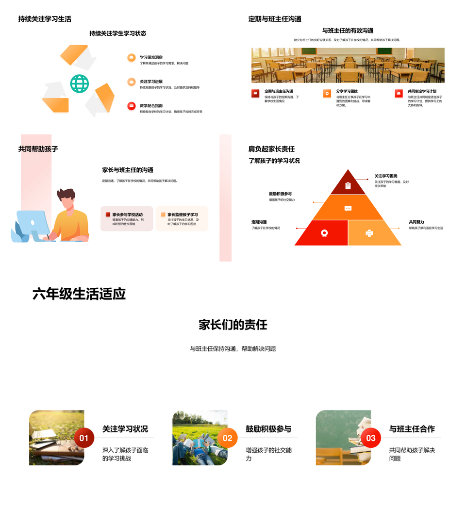 风云办公提供的六年级家校共育教学策略心理适应指南PPT模板,下载格式为pptx,一共33页,作品中文字及图均可以修改和编辑,图片更改请在作品中右键图片并更换,文字修改请直接点击文字进行修改。