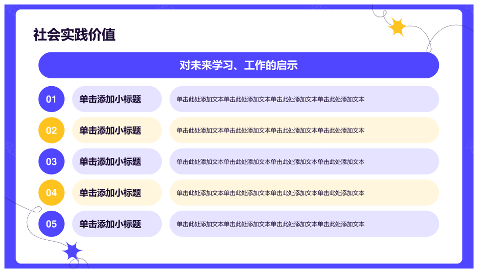 风云办公提供的大学生社会实践成果分析能力提升经验PPT模板,下载格式为pptx,一共19页,作品中文字及图均可以修改和编辑,图片更改请在作品中右键图片并更换,文字修改请直接点击文字进行修改。