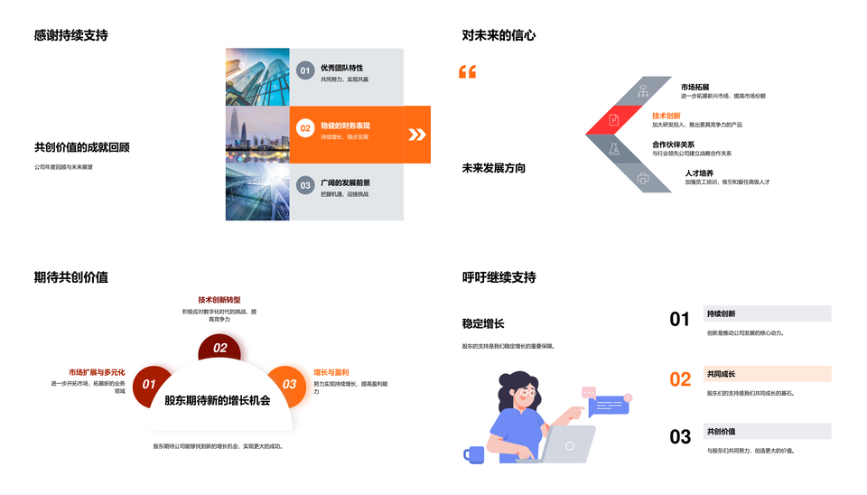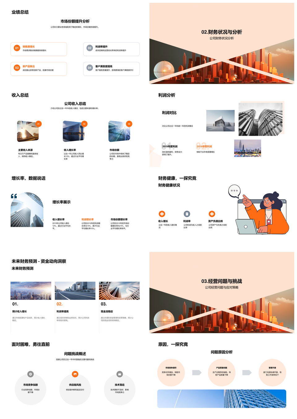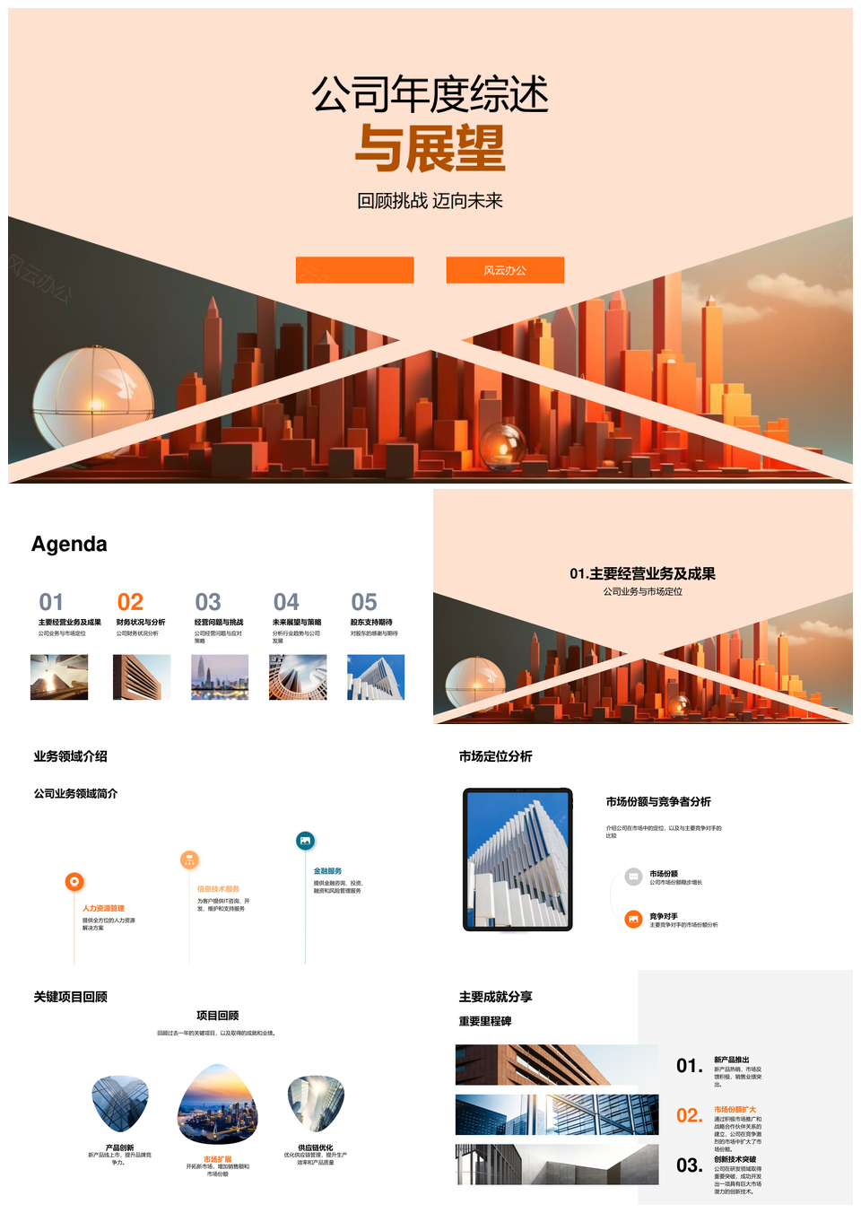 这是一张公司年度业务市场关键项目财务总结与展望PPT模板,包含公司、年度、业务、市场、关键项目、财务、总结、展望等主题内容,也可用作公司年度业务市场、年度业务市场关键、业务市场关键项目、市场关键项目财务、关键项目财务总结、项目财务总结展望、公司年度关键项目、公司业务市场财务、公司市场关键财务、公司项目总结展望、年度业务关键财务、市场项目财务总结、关键财务总结展望、业务项目财务展望、公司年度总结展望等PPT场景使用。 风云办公提供的公司年度业务市场关键项目财务总结与展望PPT模板,下载格式为pptx,一共32页,作品中文字及图均可以修改和编辑,图片更改请在作品中右键图片并更换,文字修改请直接点击文字进行修改。