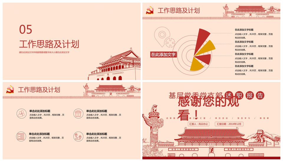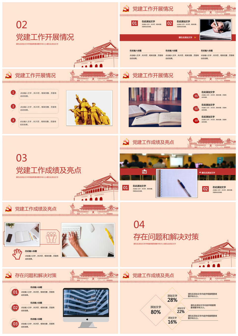 红色基层党建工作计划总结述职报告党课课件PPT模板