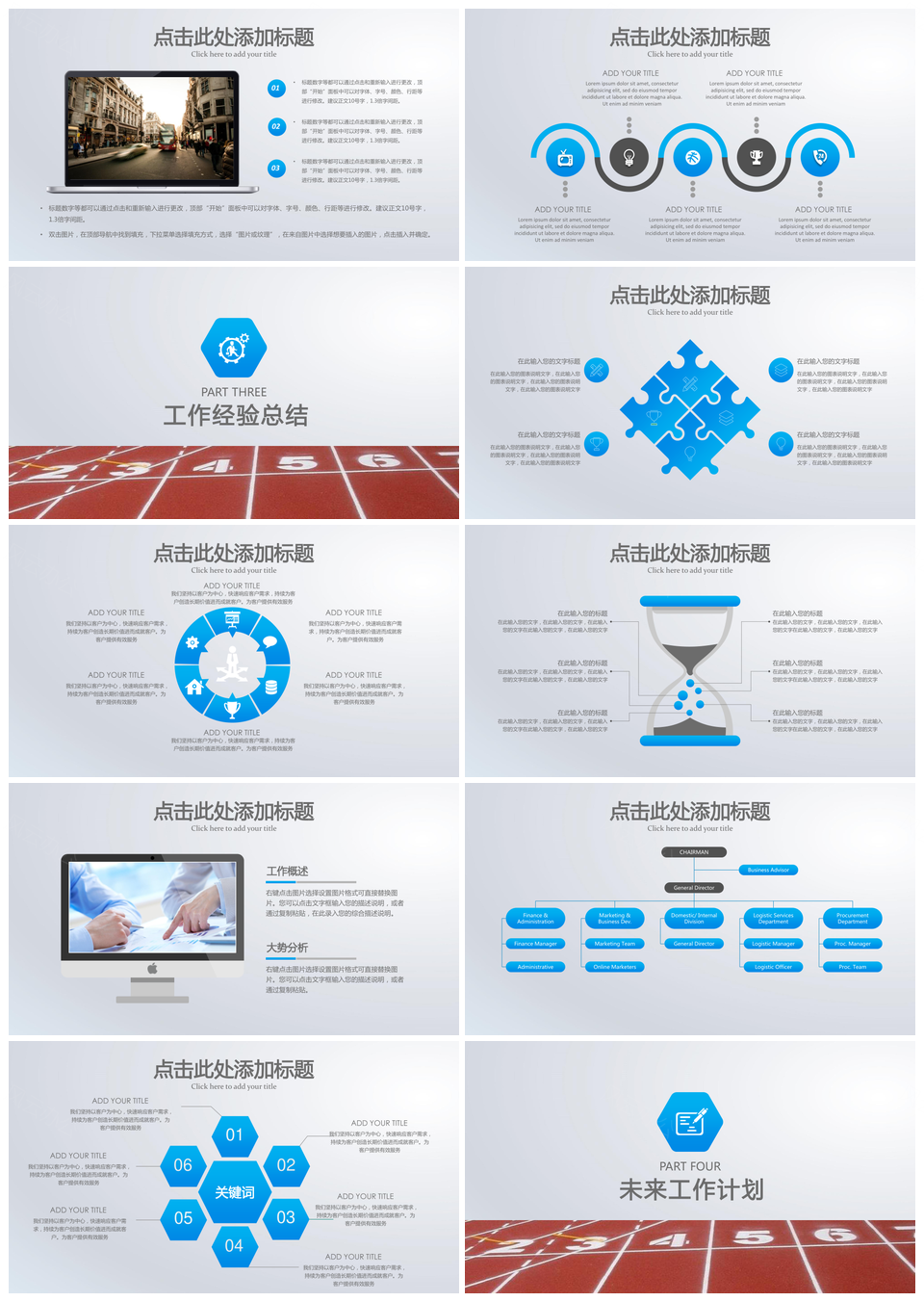 蓝色简约全面计划总结团队规划商务汇报通用PPT模板