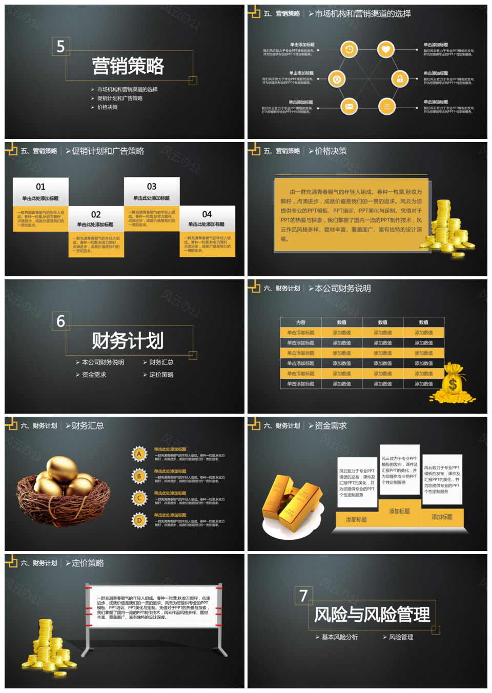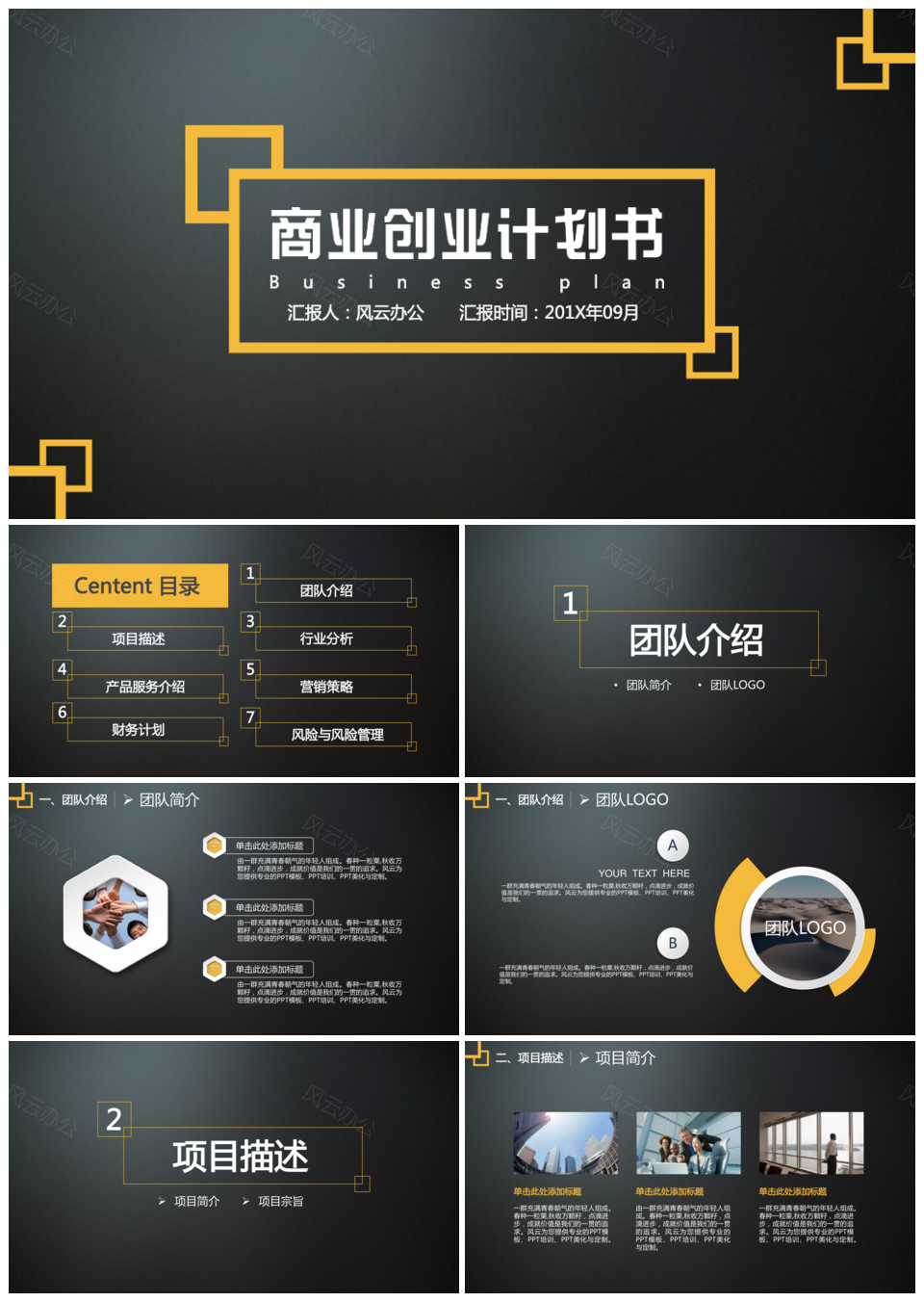 风云办公提供的商业创业商业策划计划书PPT模板,下载格式为pptx,一共29页,作品中文字及图均可以修改和编辑,图片更改请在作品中右键图片并更换,文字修改请直接点击文字进行修改。