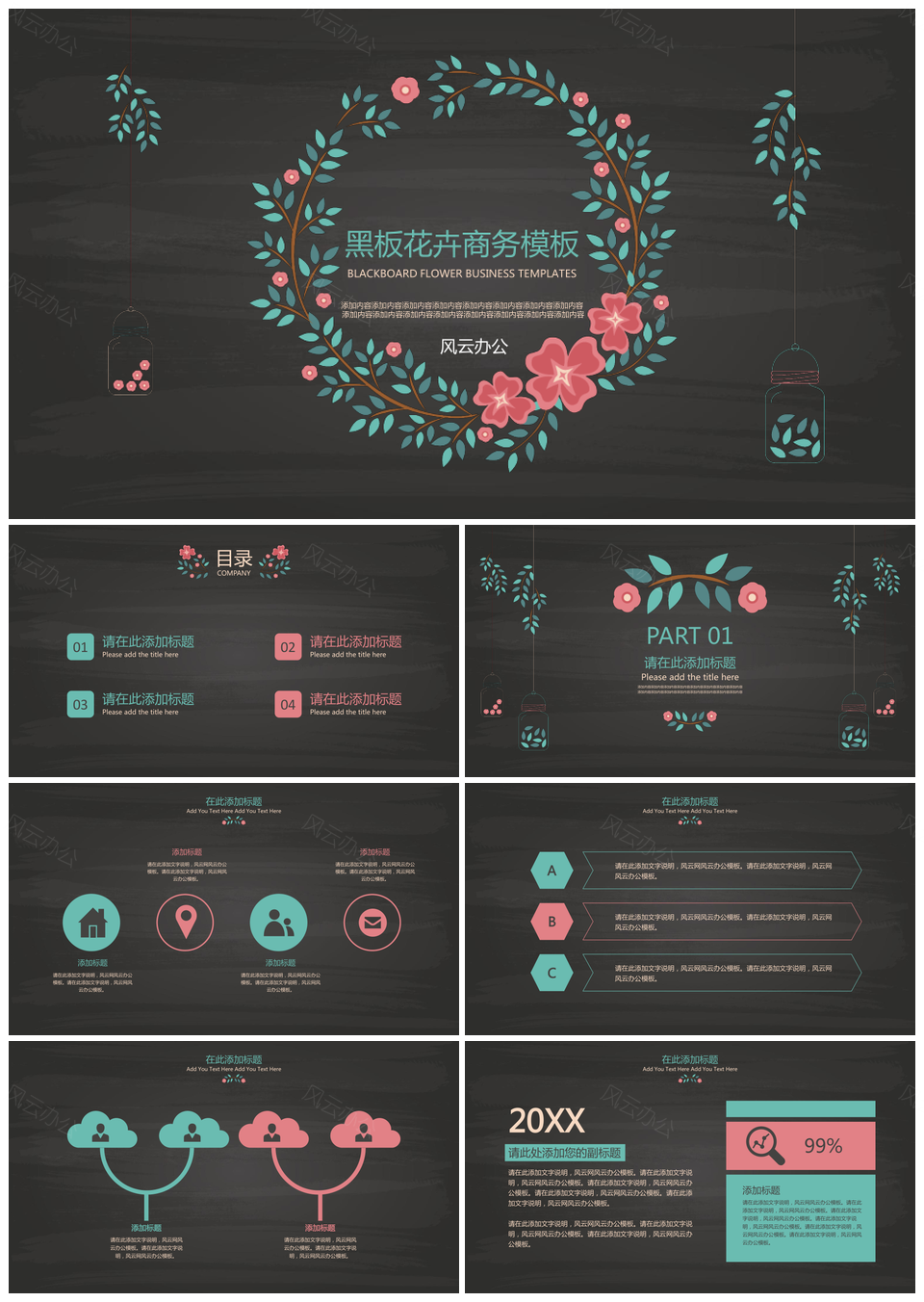 这是一张精美黑色黑板花卉PPT模板,包含黑板、花卉等主题内容,也可用作黑色黑板花卉、黑色黑板、黑色花卉、黑板花卉等PPT场景使用。 风云办公提供的精美黑色黑板花卉PPT模板,下载格式为pptx,一共25页,作品中文字及图均可以修改和编辑,图片更改请在作品中右键图片并更换,文字修改请直接点击文字进行修改。