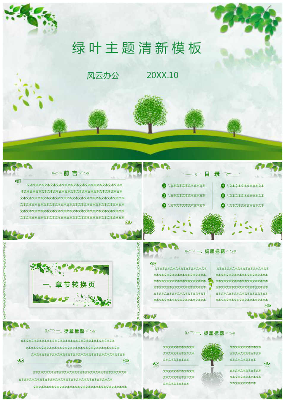 这是一张精美绿色绿叶汇报PPT模板,包含绿色、绿叶、主题、汇报、总结等主题内容,也可用作绿色绿叶主题汇报、绿色绿叶主题总结、绿色绿叶汇报总结、绿色主题汇报总结、绿叶主题汇报总结、绿色绿叶主题、绿色主题汇报、绿叶主题汇报、主题汇报总结、绿色主题总结、绿叶主题总结、绿色绿叶、绿色主题、主题汇报、汇报总结等PPT场景使用。 风云办公提供的精美绿色绿叶汇报PPT模板,下载格式为pptx,一共24页,作品中文字及图均可以修改和编辑,图片更改请在作品中右键图片并更换,文字修改请直接点击文字进行修改。