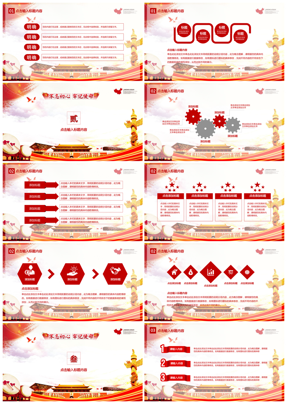 红色中国梦强国梦幸福都是奋斗出来的党政党建工作PPT模板推荐