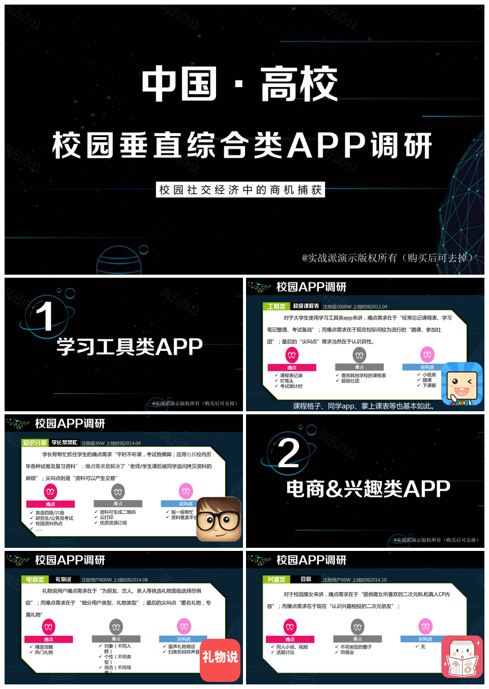 风云办公提供的蓝色高校APP市场调研报告PPT模板,下载格式为pptx,一共16页,作品中文字及图均可以修改和编辑,图片更改请在作品中右键图片并更换,文字修改请直接点击文字进行修改。