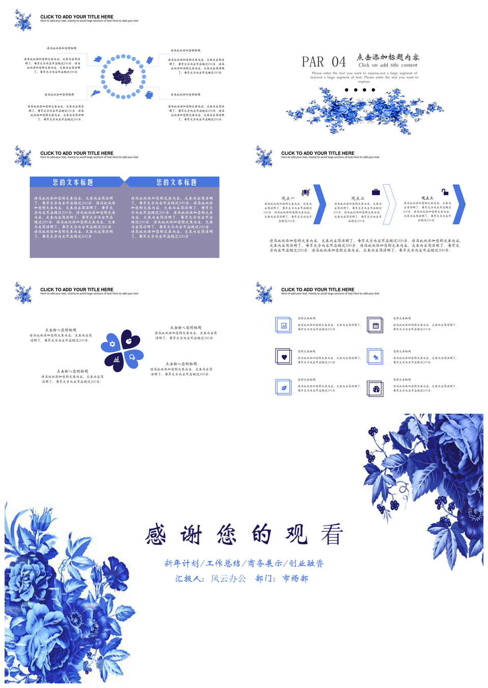蓝色中国风经典青花瓷风格优雅商务工作汇报通用ppt模板通用PPT模板