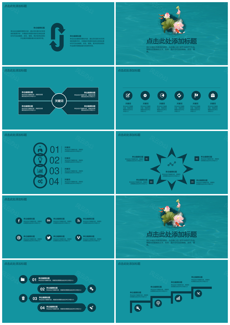 这是一张蓝色荷花中国风PPT模板高质量,包含蓝色、中国风、荷花、夏日、清凉、小清新等主题内容,也可用作蓝色中国风荷花夏日、中国风荷花夏日清凉、荷花夏日清凉小清新、蓝色中国风荷花、中国风荷花夏日、荷花夏日清凉、夏日清凉小清新、蓝色中国风、中国风荷花、荷花夏日、夏日清凉、清凉小清新等PPT场景使用。 风云办公提供的蓝色荷花中国风PPT模板高质量,下载格式为pptx,一共27页,作品中文字及图均可以修改和编辑,图片更改请在作品中右键图片并更换,文字修改请直接点击文字进行修改。