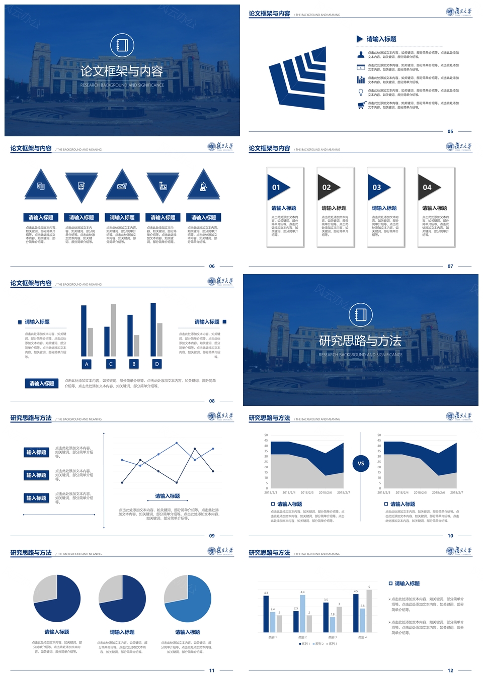 高质量2025复旦大学蓝色论文答辩PPT模板推荐