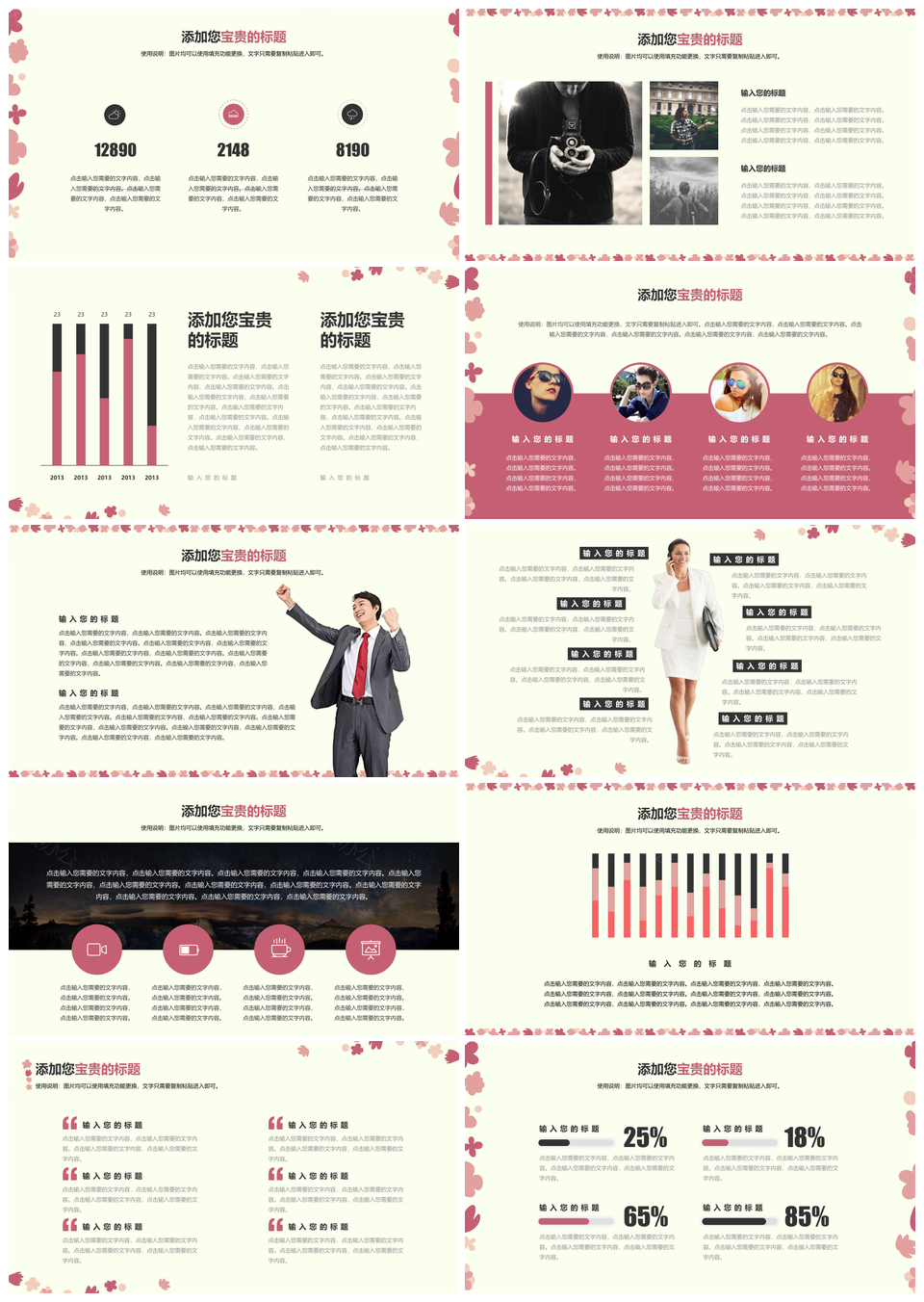 2025彩色简约小清新工作汇报商务风总结PPT模板
