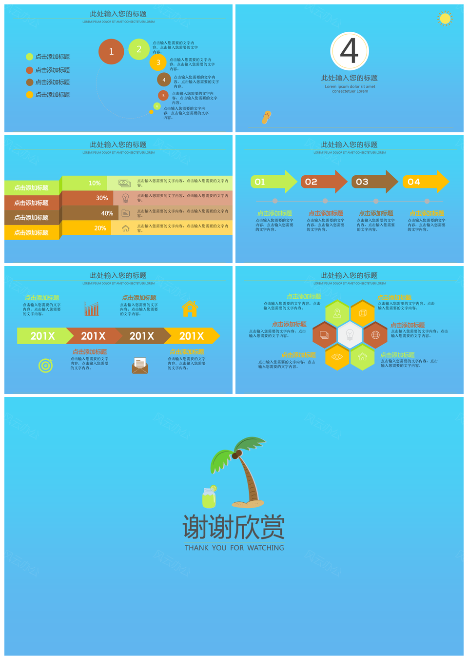 风云办公提供的卡通可爱小清新夏日旅行PPT模板,下载格式为,一共23页,作品中文字及图均可以修改和编辑,图片更改请在作品中右键图片并更换,文字修改请直接点击文字进行修改。