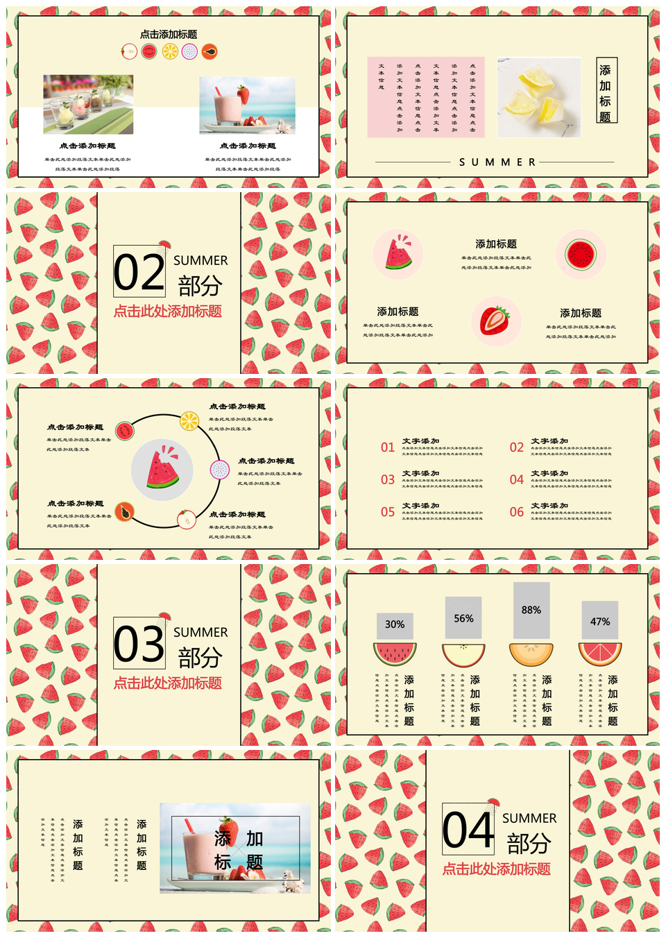 这是一张黄色夏微凉小清新西瓜高端PPT模板,包含黄色、夏微凉、小清新、可爱、西瓜等主题内容,也可用作微凉小清新可爱西瓜、黄色微凉小清新、小清新可爱西瓜、黄色微凉西瓜、微凉可爱西瓜、黄色小清新可爱、可爱西瓜通用、黄色微凉小清新可爱、微凉小清新可爱、小清新可爱通用、黄色可爱西瓜、微凉西瓜通用、小清新西瓜通用、黄色小清新西瓜、微凉可爱通用、黄色西瓜通用等PPT场景使用。
