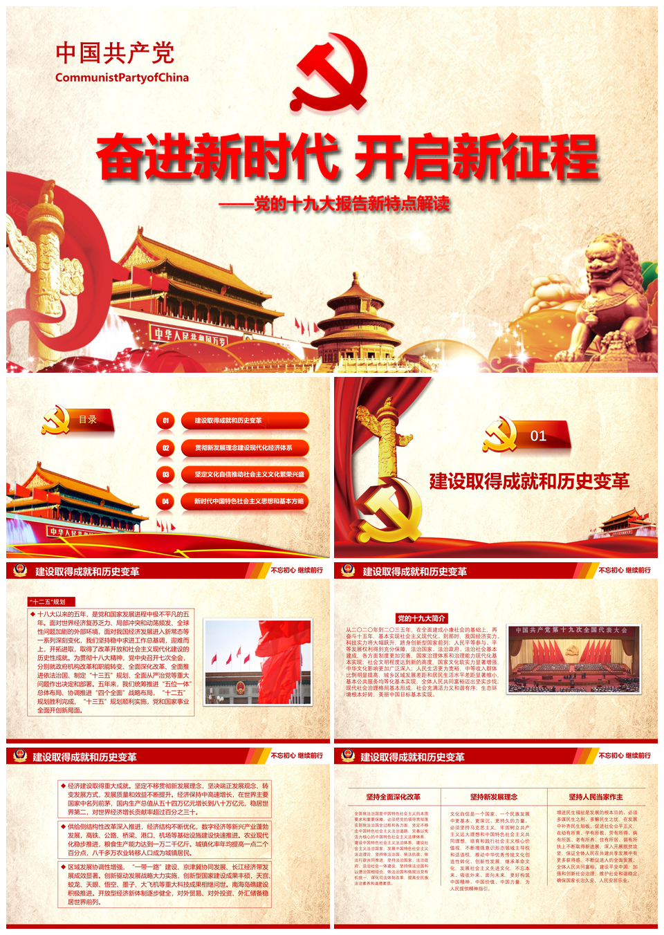 这是一张彩色十九大报告新特点高端PPT模板,包含彩色、聚焦、十九大、奋进、新时代、开启、新征程、报告、新特点等主题内容,也可用作聚焦十九大奋进新时代、奋进新时代开启新征程、新时代开启新征程十九大报告、开启新征程十九大报告新特点、聚焦十九大奋进、奋进新时代开启、新时代开启新征程、开启新征程十九大报告、聚焦十九大、奋进新时代、新时代开启、开启新征程、新征程十九大报告、十九大报告新特点等PPT场景使用。
