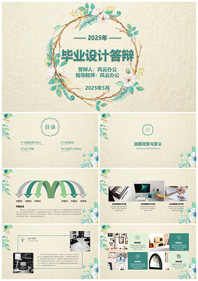绿色手绘花环毕业答辩PPT模板精美可编辑2025
