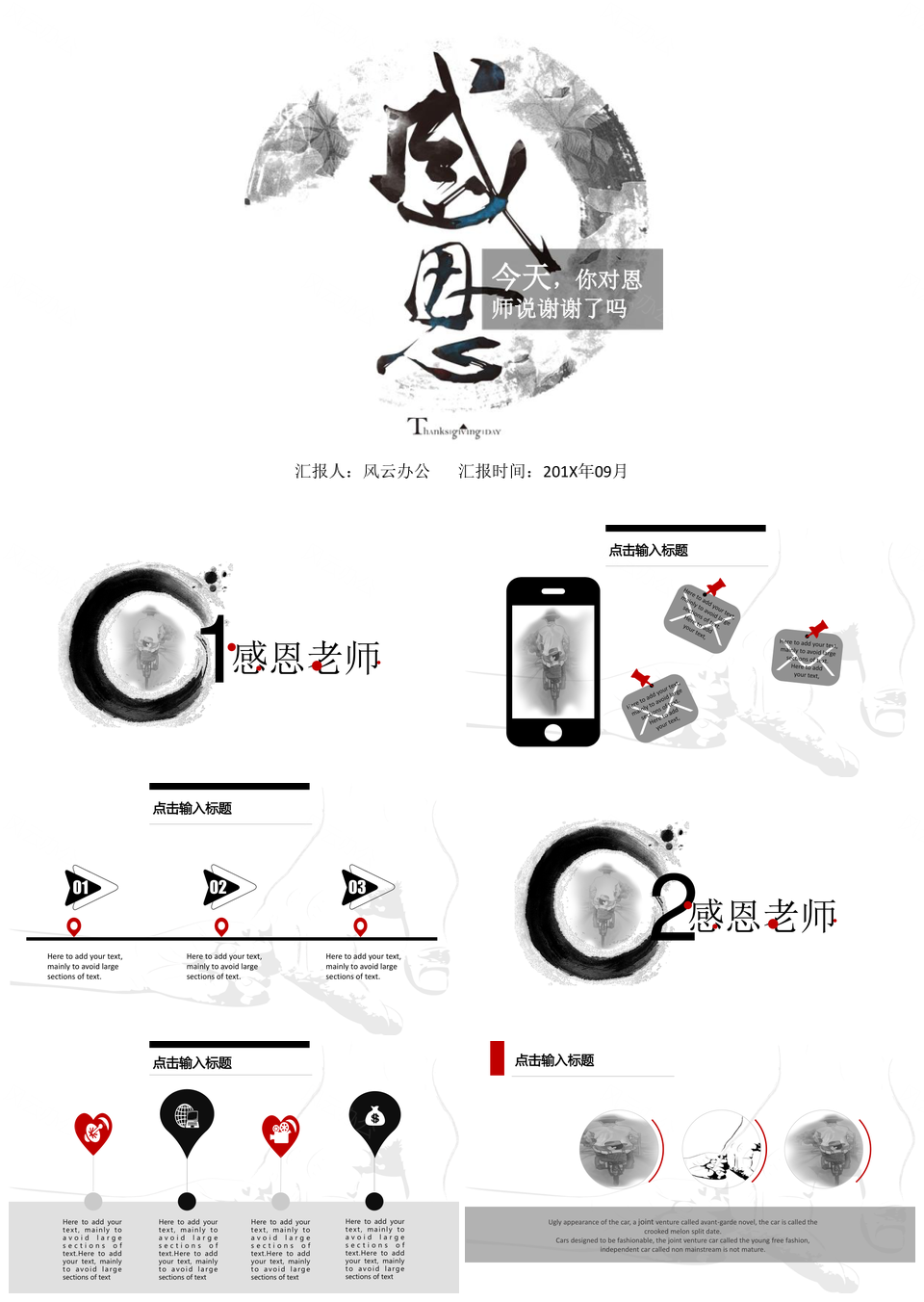 这是一张古风水墨风感恩教师节PPT模板,包含古风、水墨风、感恩、教师节等主题内容,也可用作古风、水墨、感恩、教师节 古风水墨感恩教师节、古风水墨感恩、古风感恩教师节、水墨感恩教师节、古风水墨、古风感恩、水墨感恩、感恩教师节等PPT场景使用。 风云办公提供的古风水墨风感恩教师节PPT模板,下载格式为pptx,一共10页,作品中文字及图均可以修改和编辑,图片更改请在作品中右键图片并更换,文字修改请直接点击文字进行修改。