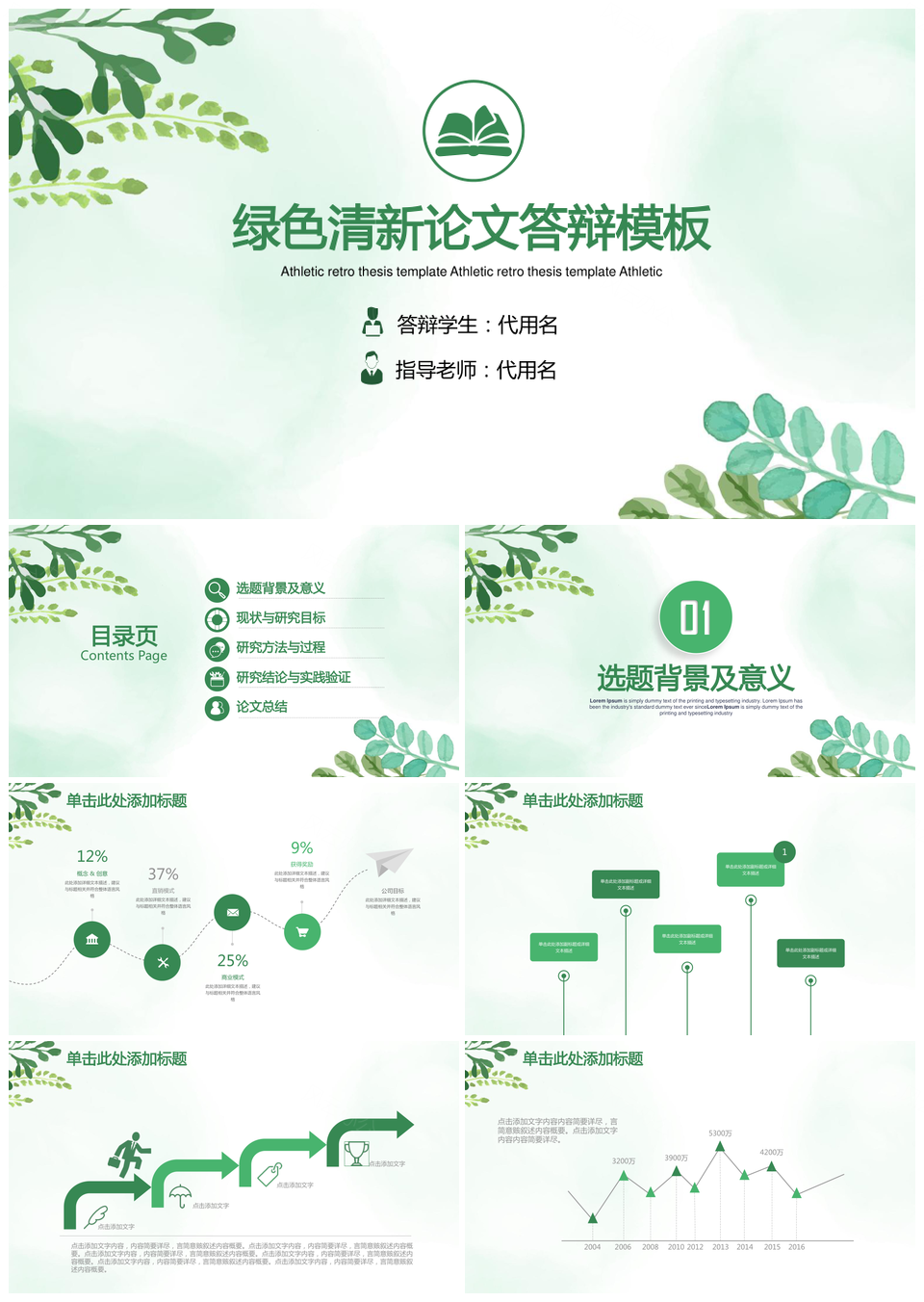 绿色小清新简约毕业答辩 PPT 模板