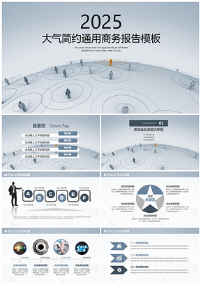 2025蓝色大气简约通用商务总结报告PPT模板推荐