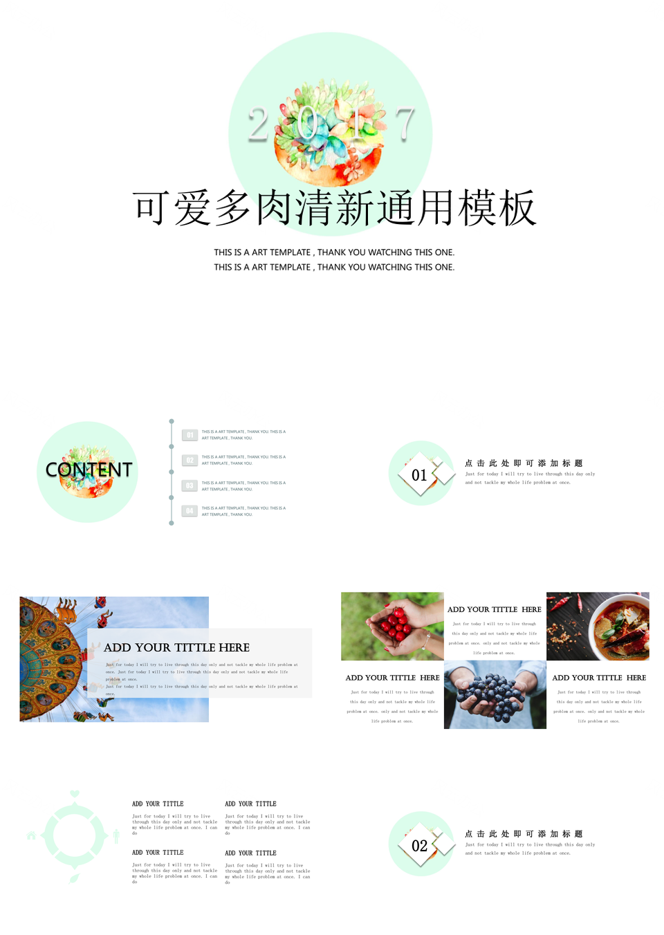 这是一张彩色多肉手绘PPT,包含彩色、可爱、多肉、清新、手绘等主题内容,也可用作彩色可爱多肉清新、可爱多肉清新手绘、多肉清新手绘通用、彩色多肉清新手绘、彩色可爱多肉清新、可爱多肉清新手绘、多肉清新手绘通用、彩色可爱多肉、可爱多肉清新、多肉清新手绘、清新手绘通用、彩色可爱、可爱多肉、多肉清新、清新手绘、手绘通用等PPT场景使用。 风云办公提供的彩色多肉手绘PPT,下载格式为pptx,一共16页,作品中文字及图均可以修改和编辑,图片更改请在作品中右键图片并更换,文字修改请直接点击文字进行修改。