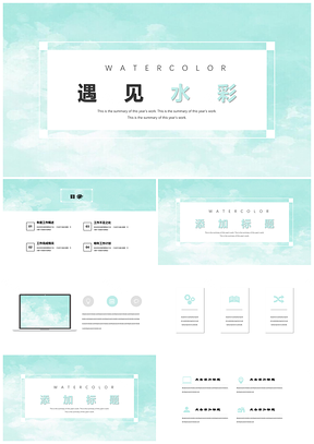 绿色遇见水彩唯美小清新手绘自然年终总结PPT模板