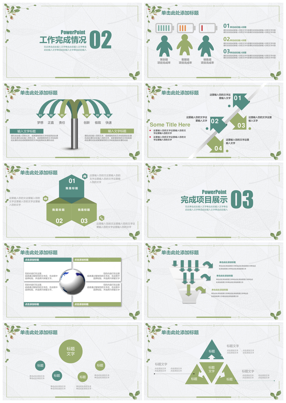 绿色唯美小清新创意实用工作总结计划汇报动态通用PPT模板
