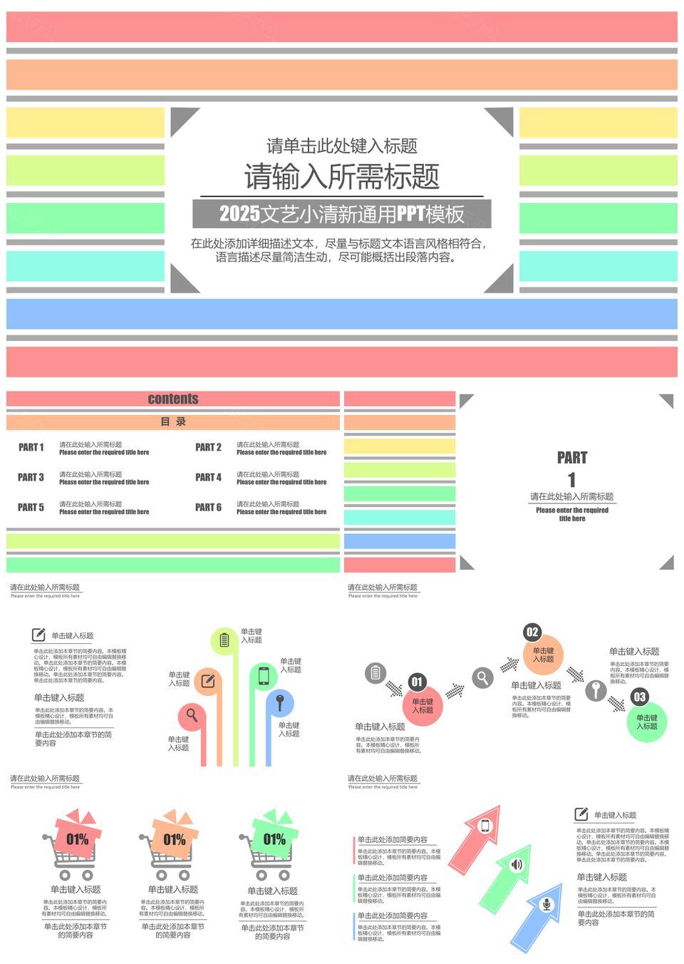 彩色文艺清新春天你好工作总结工作计划个人述职PPT模板