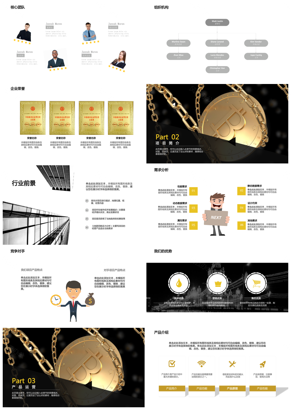 黑色区块链投资融资计划书可编辑PPT模板推荐